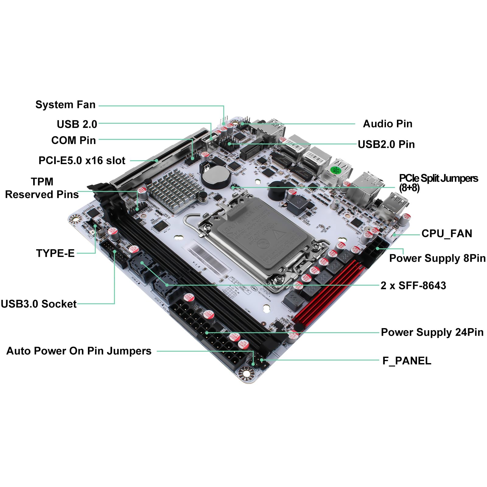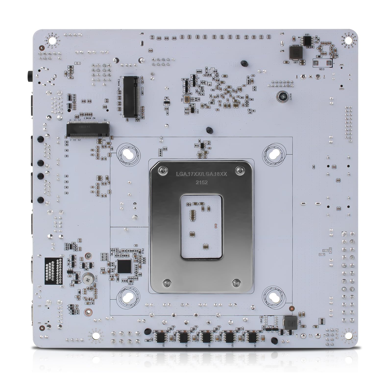 -Dual 4K Display: This mini-ITX board has HDMI2.0 and DP1.4 ports at 4K@60Hz, and it has PCIe5.0 x16 slot which can be expanded to graphics cards, PCI-E network cards, support for various types of PCI-E protocol expansion accessories and also supports splitting into 2 x8 signals via jumper caps