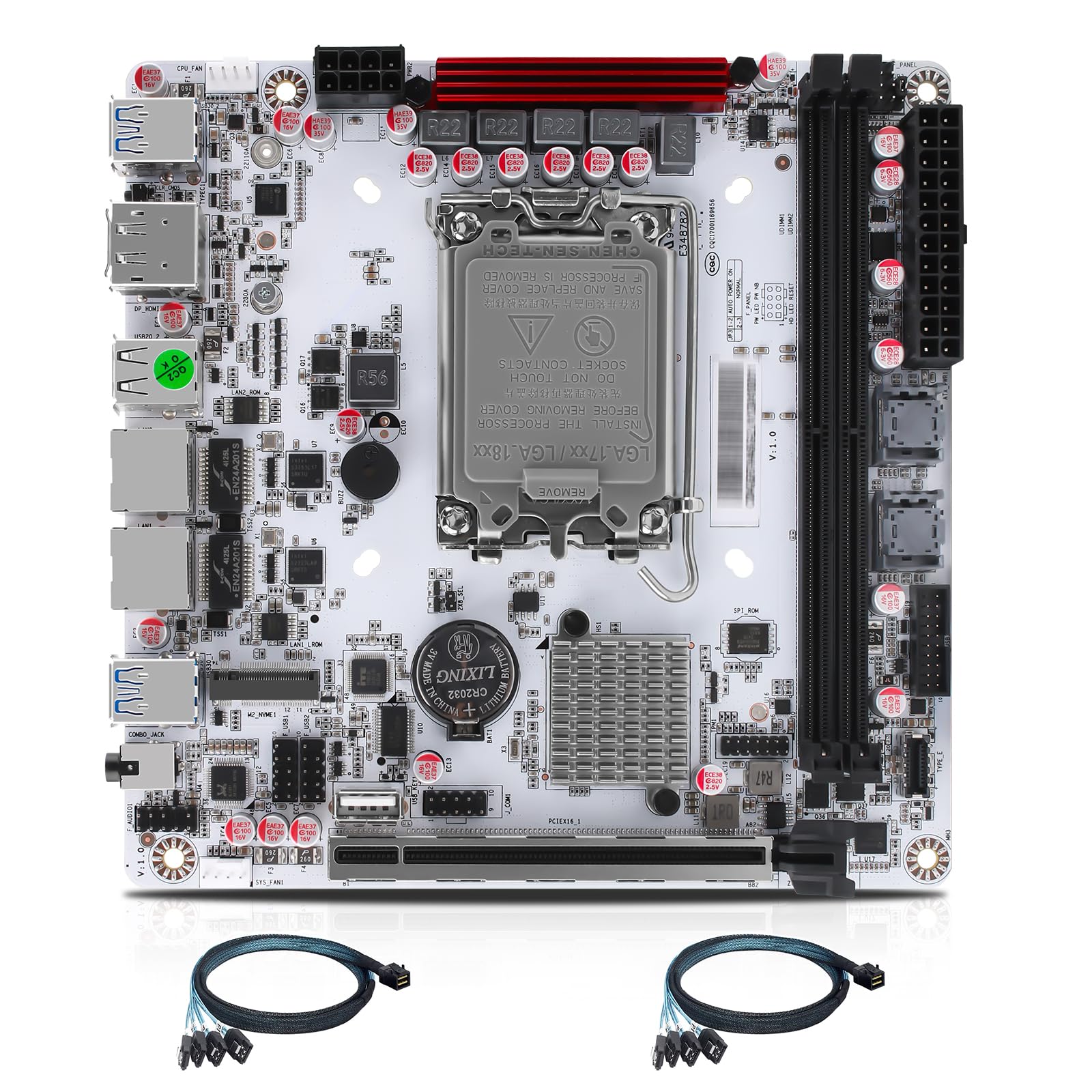 -Heat Dissipation: It is compatible with LGA115x or LGA1700 series processors cooling fan. Package includes 1x Q670 8-Bay NAS ITX motherboard, 2x SFF-8643 cable, 1x I/O Shield, some screws, 1x warranty card
