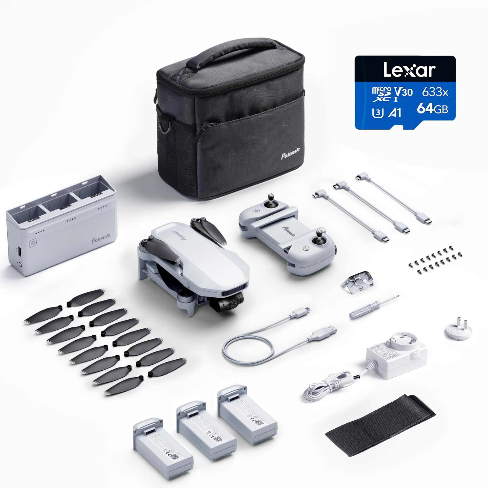 Potensic ATOM Drone GPS 4K con cardán de 3 ejes, menos de 249 g, 96 minutos de vuelo, transmisión máxima de 6 km, seguimiento visual, disparos rápidos 4K/30 FPS, ligero para adultos y principiantes, combo de vuelo más