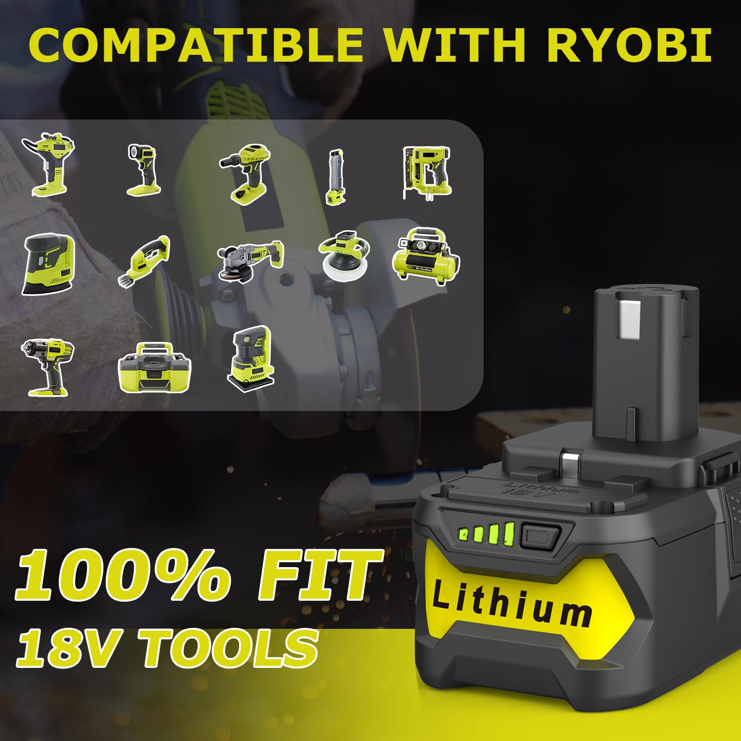 -✅[Compatible with Ryobi 18v Battery] Replacement for Ryobi 18v lithium battery P100, P102, P103, P104, P105, P107, P108, P109, compatible with All Ryobi 18V ONE+ System Cordless Power Tools.