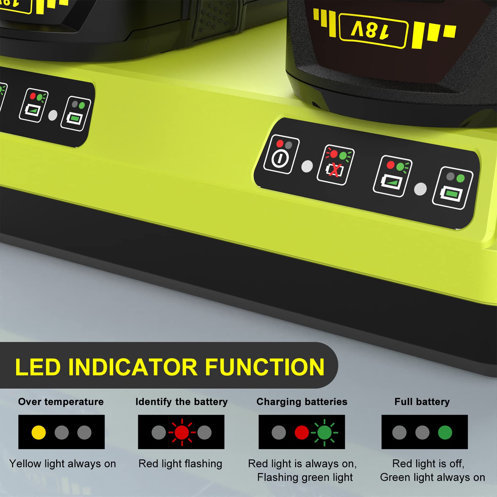 -✅【Dual Design】Dual charger for Ryobi 18v battery charger can charge 2 batteries at the same time, greatly reduce your downtime and improve your work efficiency. Advanced charging technology, universal 100V-240V voltage input.