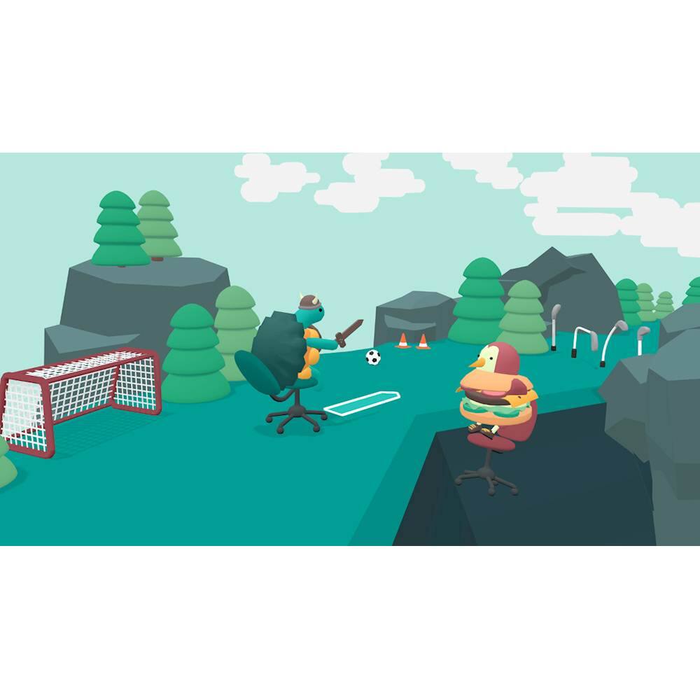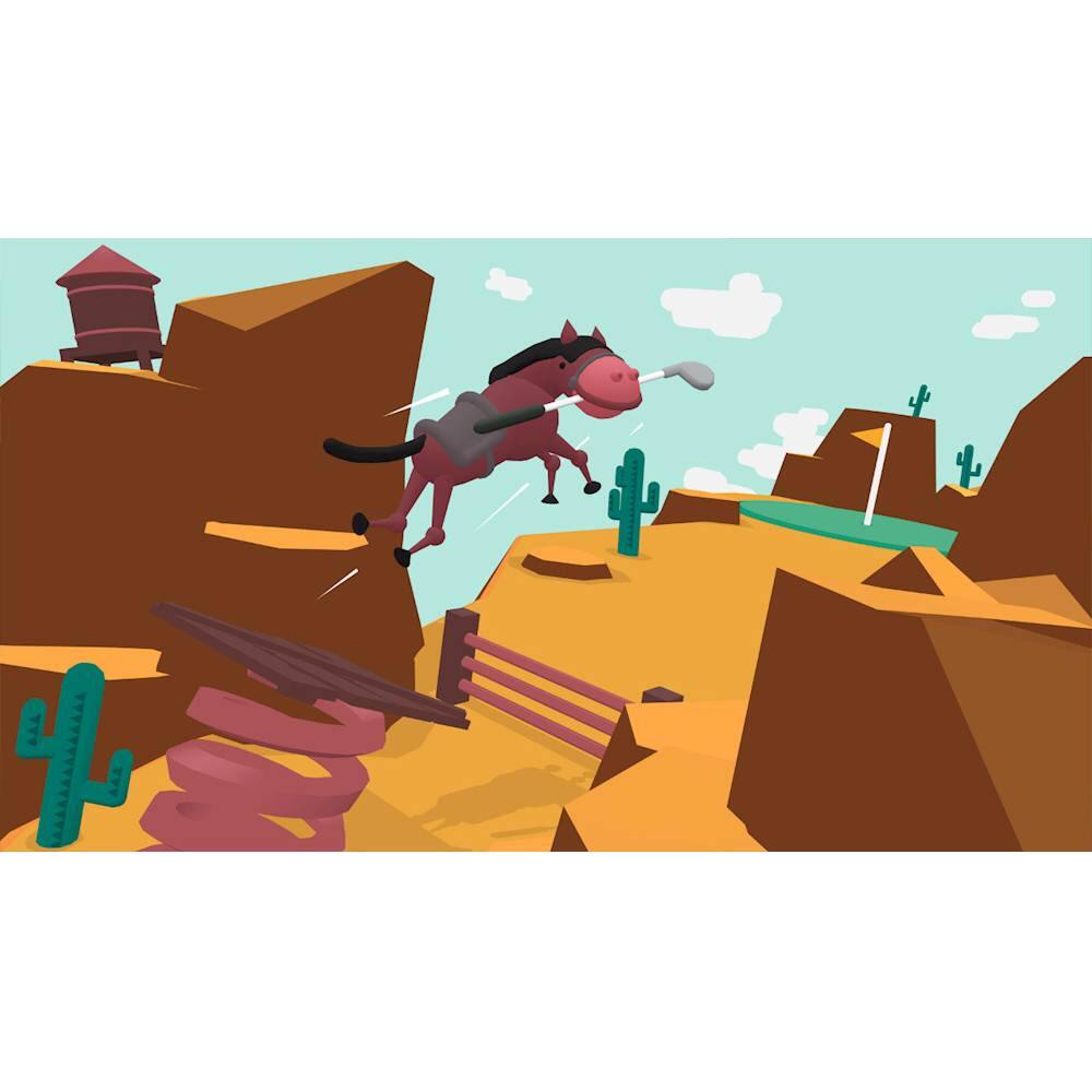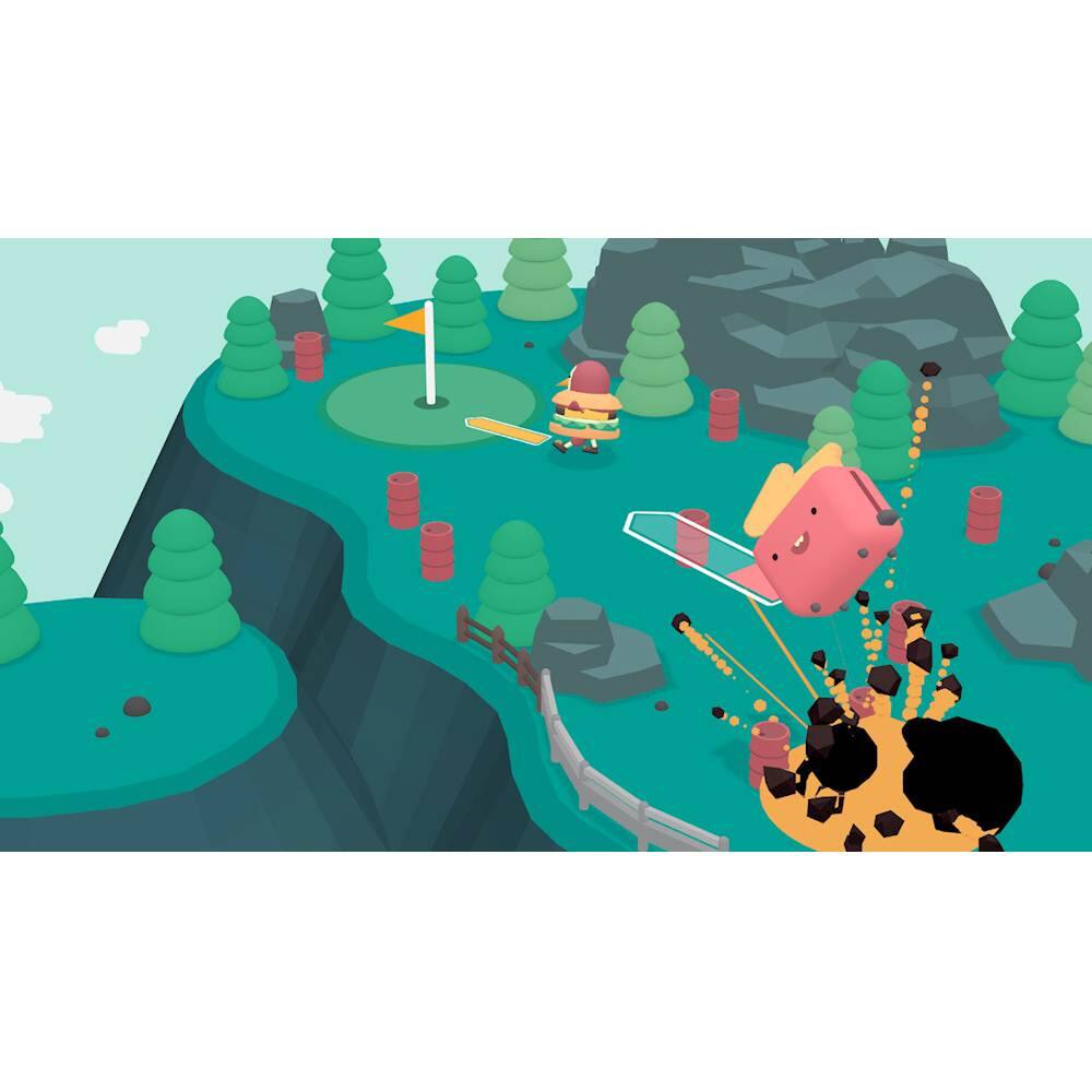 Brace yourself for reality-defying surprises in WHAT THE GOLF for Nintendo Switch. This physics-based game of golf imitation simplifies esoteric terminologies, letting you hit a house for a Home In One or a bird to earn a Birdy. Featuring a local party mode, WHAT THE GOLF allows you to challenge a friend on farcical golf courses for a hilarious gaming experience.