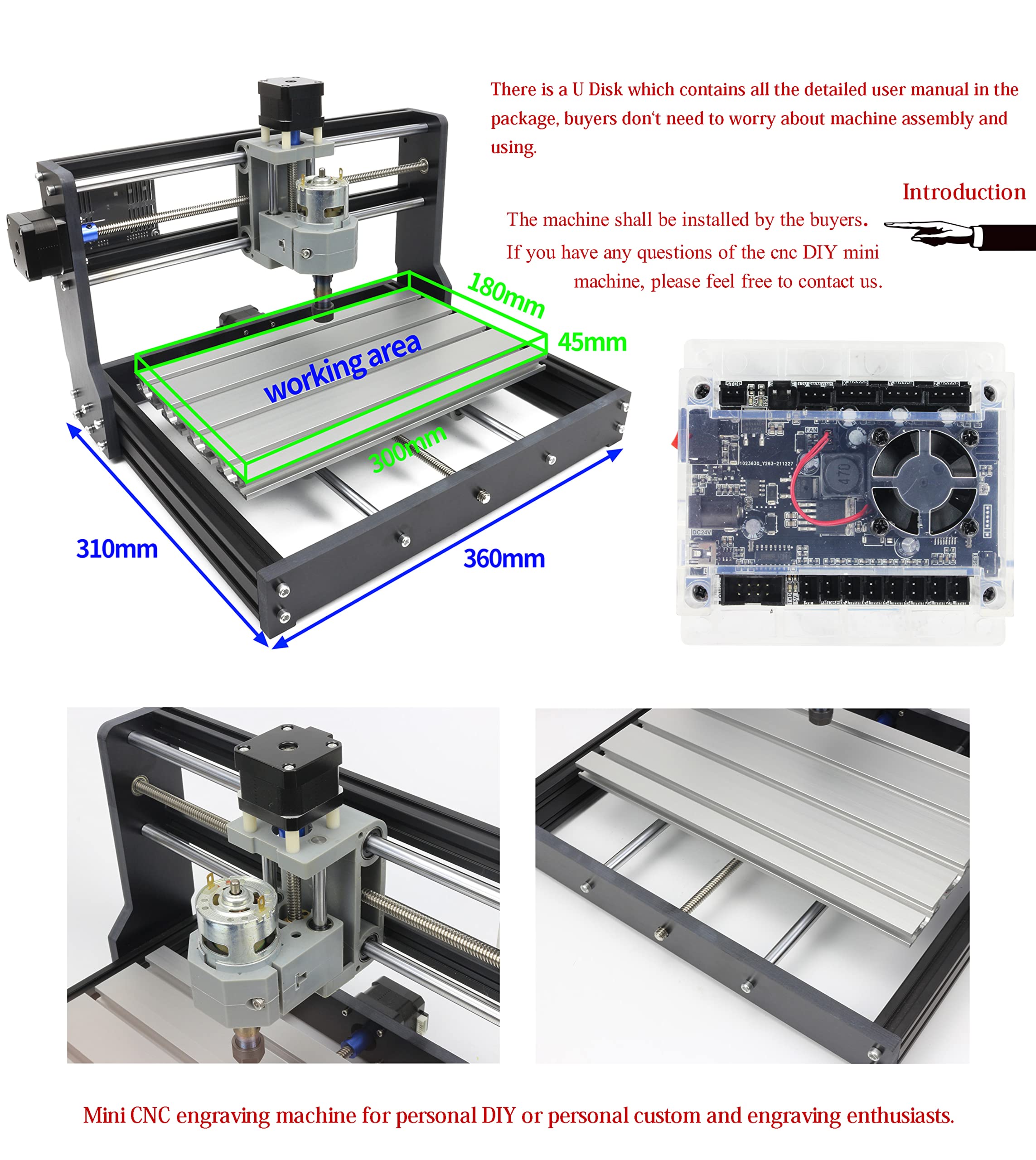 -✅【Simple Assembly/Use】This mini cnc router machine kit is mainly designed for DIY carving enthusiasts/beginners, easily assembled and opertated, coming with a paper manual and USB flash drive of all the files.