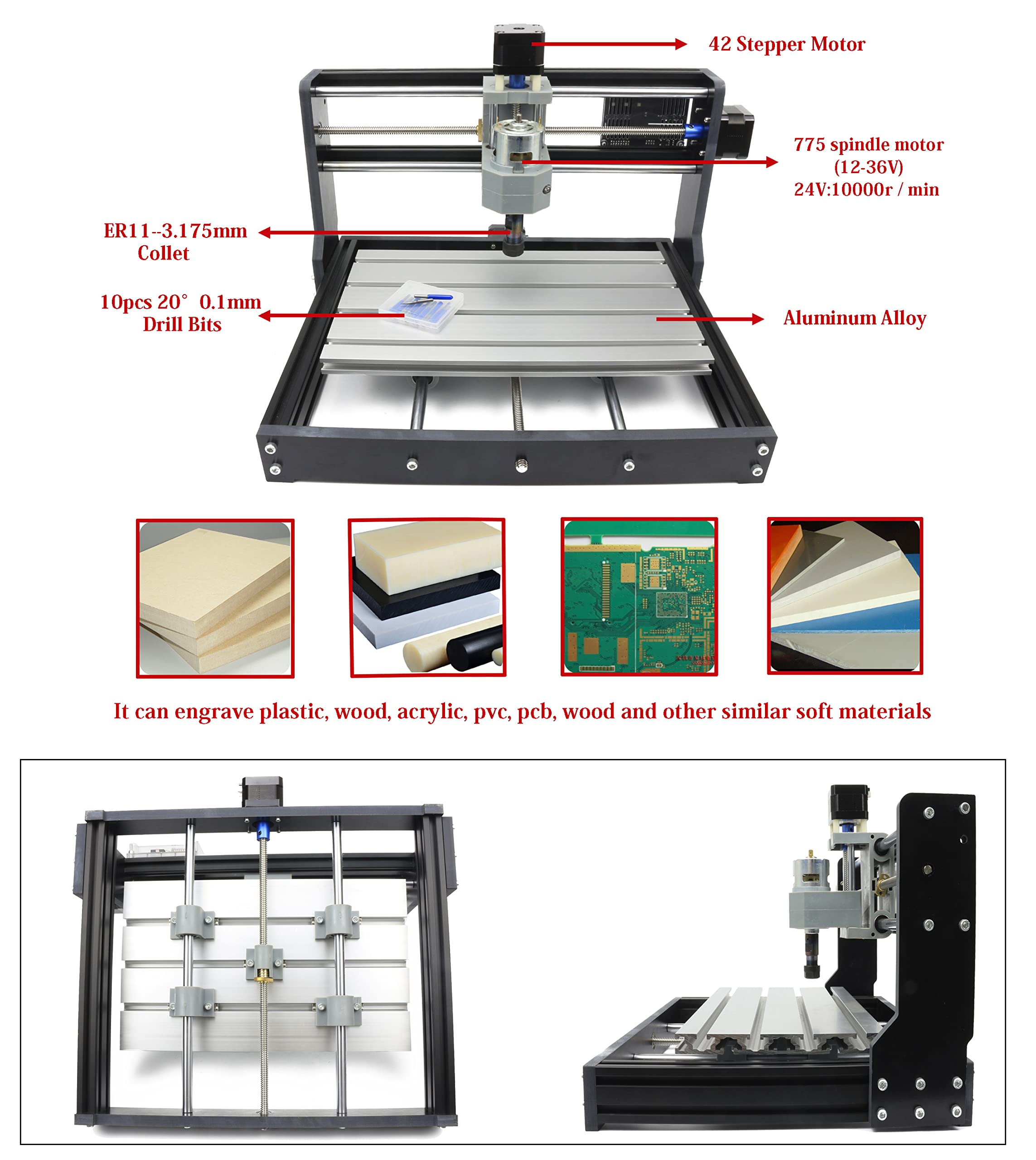 -✅【Applicable Engraving Material】This machine can not only engraving wood/plastic/acrylic/ pvc/pcb/carbon fiber/density board and so on, but also soft metal like copper, aluminum and the similar materials. Howerever, harder materials cannot be engraved such as glass, hard metal, jade, ect.