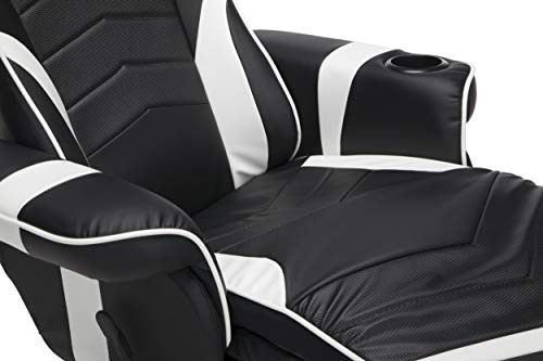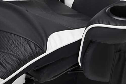 Ready to take your gaming to the next level? RESPAWN has the perfect seating solution for the console gamer who craves an extra level of comfort. The RESPAWN-900 Racing Style Gaming Recliner, Reclining Gaming Chair, in White, helps you win while relaxing in style. The gaming recliner features segmented padding that provides all-day gaming comfort with a headrest pillow to keep your spine aligned. There's even a built-in cup holder, in the left arm, to make hydrating easy and convenient and a removable side pouch to keep game controllers and headphones at an arm’s length away. The chair and footrest are a continuous unit, which eliminates traditional recliner gaps for wires to get caught when you collapse the footrest. The back reclines 135-degrees and moves independent of the extendible footrest, and vice versa, to provide freedom of choice in how you sit. The pedestal base provides sturdy support so you can recline and extend the footrest with confidence. The recliner swivels 360 degrees and holds users up to 275 lb. An award-nominated brand, RESPAWN is committed to your satisfaction and covers this desk with our RESPAWN 5-Year Limited Warranty. Sure, you can level up without this comfy gaming recliner, but why would you want to? Rest comfortably, and assured, because the chair is covered by the RESPAWN 5-Year Limited Warranty. Game on!