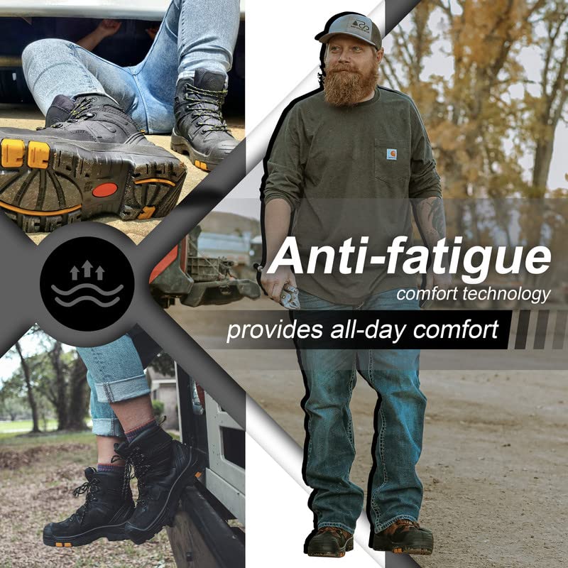 -【Metal Free Composite toe】Carbonfiber toe, 50% lighter. Metal Free boots, Metal detector free. Conform to Ameircan standard ASTM F2413-18 I/75 C/75 EH.