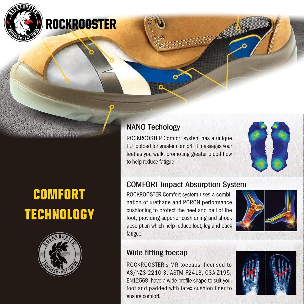 Description Dear Buyer: This is Rockrooster. Our shoes have a variety of technical support.These capability are tested and verified on site. Durable and comfortable high-tech materials can ensure that you complete your work safely and efficiently. Rockrooster men's work boots are committed to maintaining safety while maintaining a beautiful appearance. Let you have both comfort and beauty. When choosing shoes, please check the information on the homepage carefully. If you choose the wrong size, please contact customer service, they will help you make changes, please rest assured to buy. Thank you so much for your great support on Rockrooster. Best Regards Rockrooster