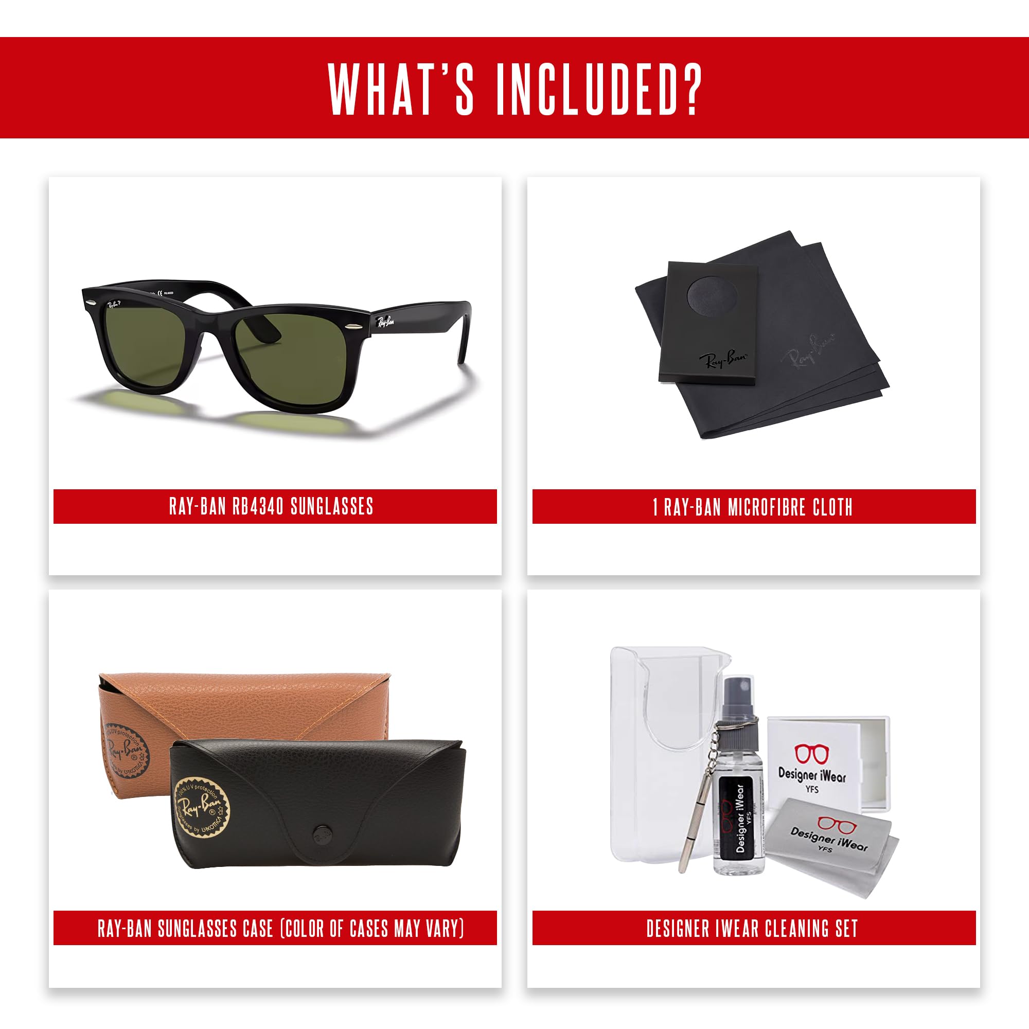 -Accessories Included: Enhance your Ray-Ban experience with a complete accessories package including a Ray-Ban-branded protective case and a microfiber cleaning cloth to keep your sunglasses in pristine condition. Additionally, our exclusive bundle includes a premium lens cleaning kit, screwdriver keychain, mirror and a stylish sunglasses pouch for extra protection and convenience.