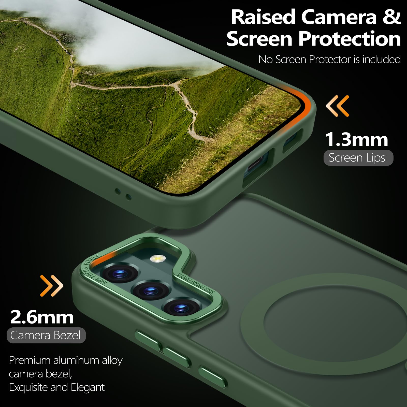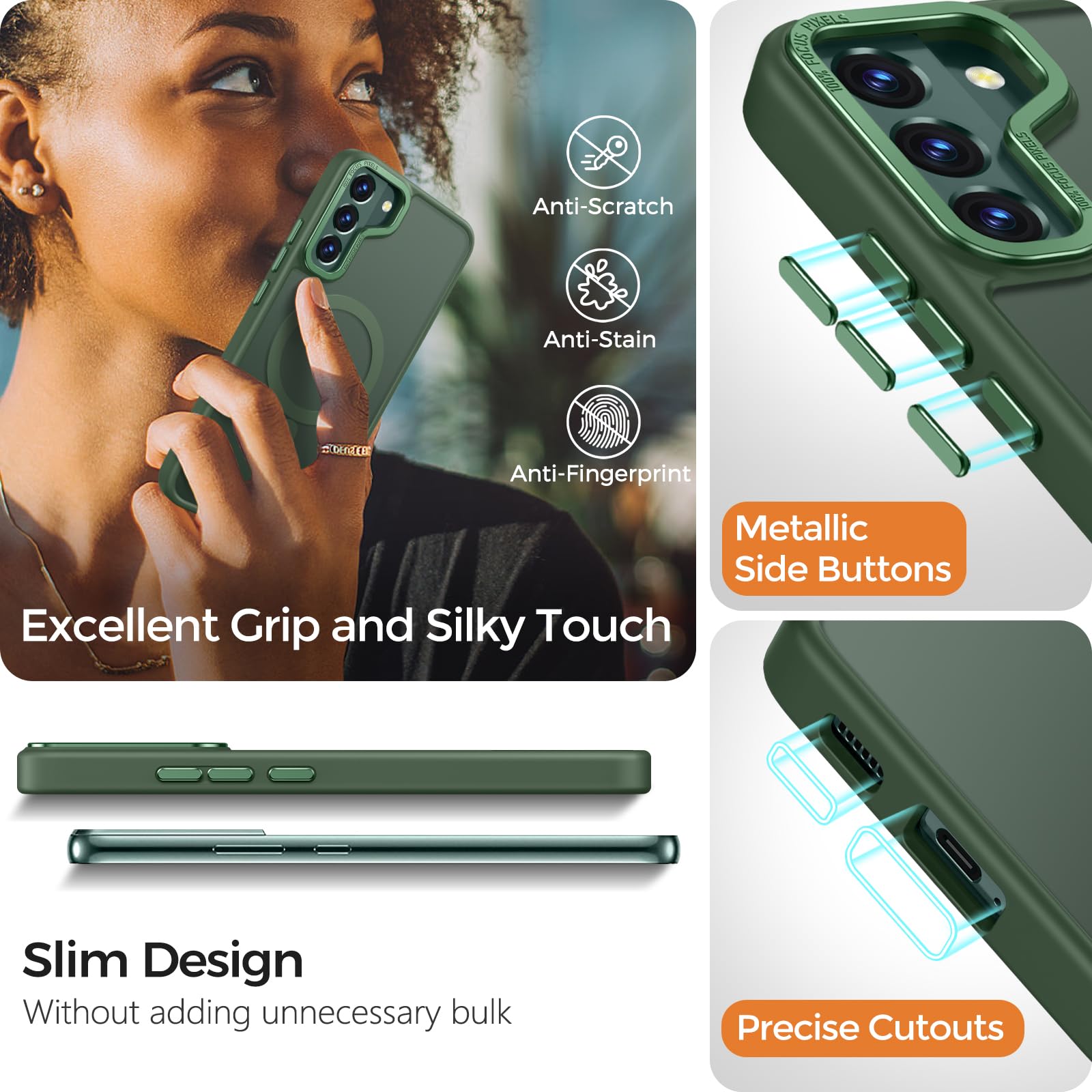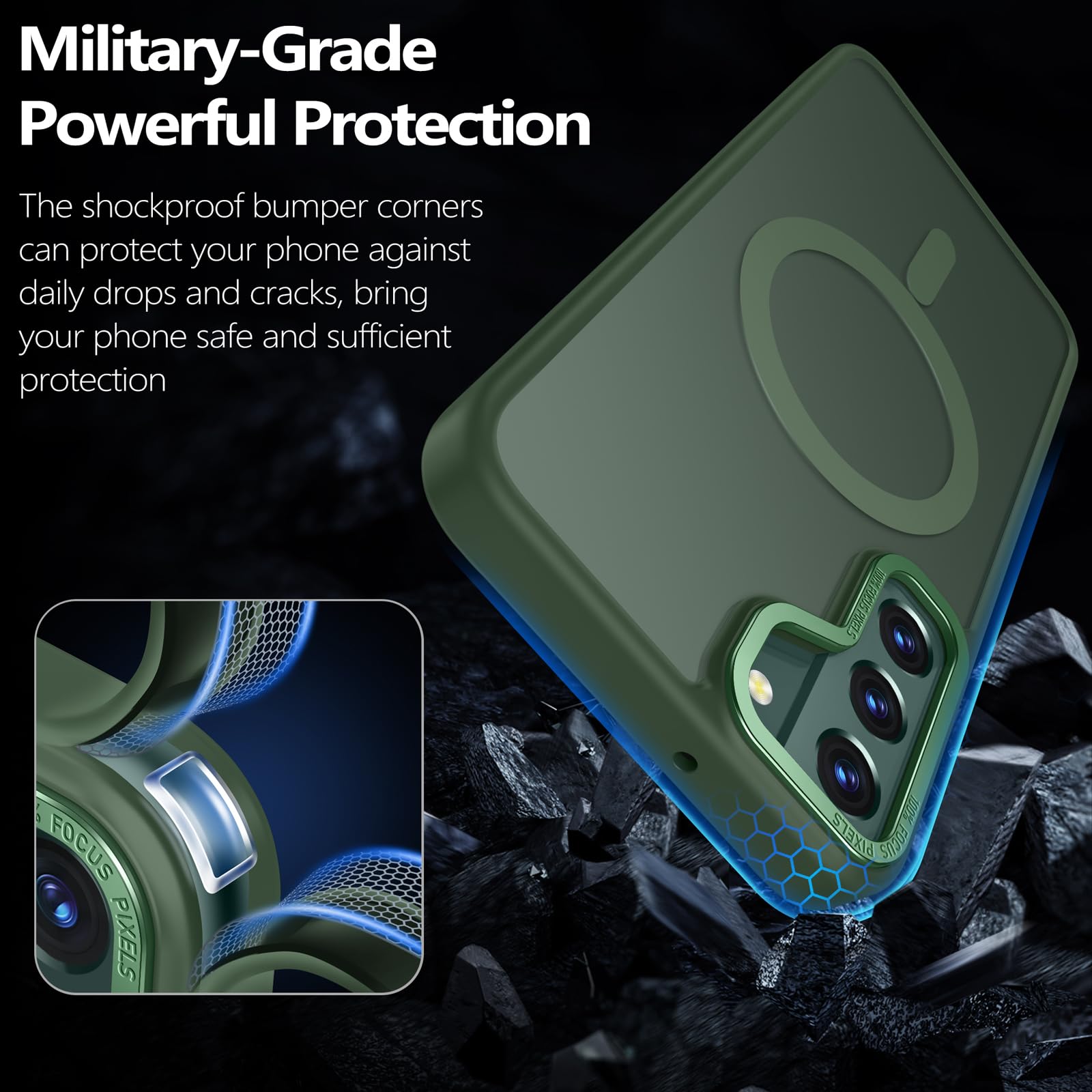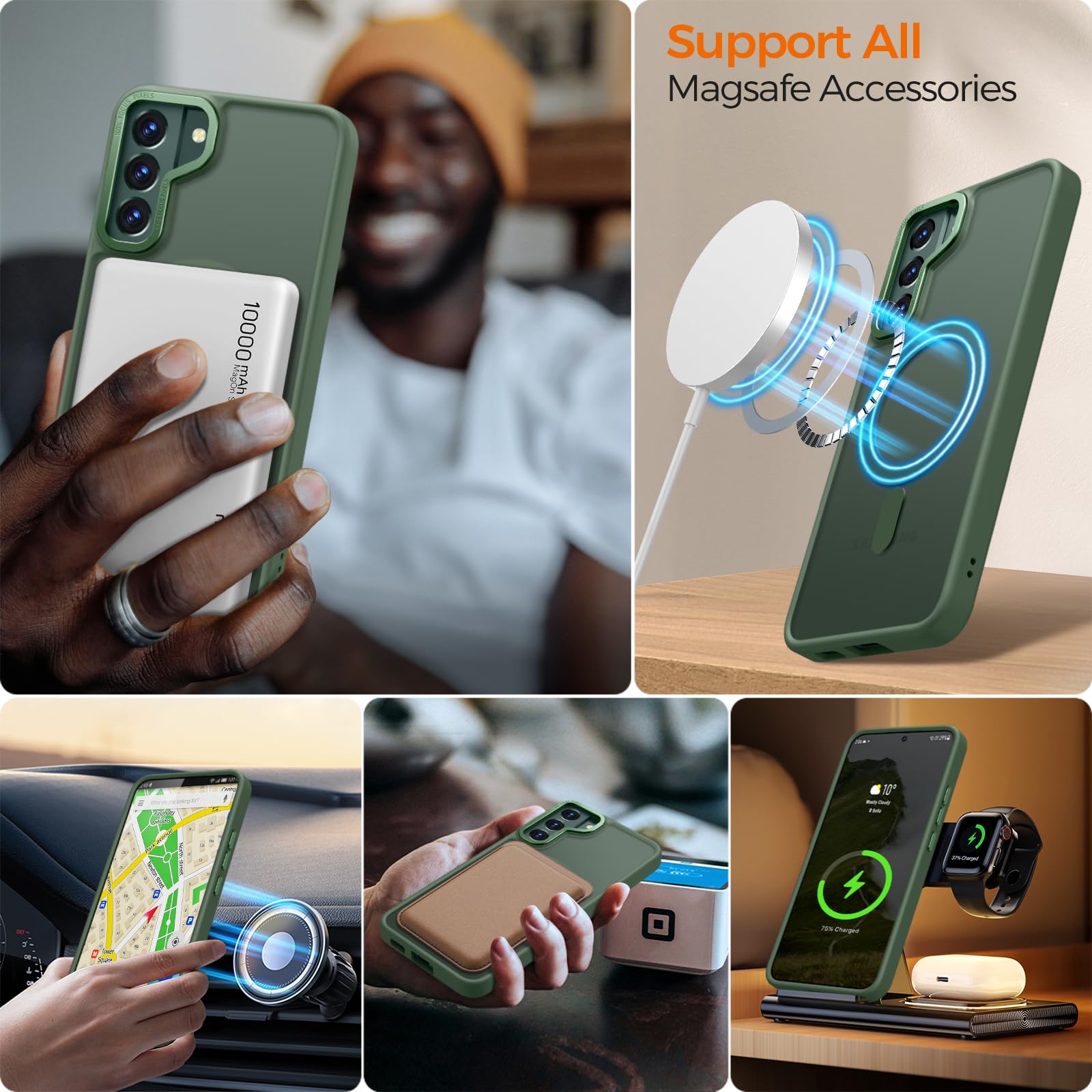 Rayboen Funda Magnética para Samsung Galaxy S22, [Compatible con Magsafe] Funda Protectora a Prueba de Golpes Slim Fit Skin Feel Phone Cover para Samsung S22 5G con Parte Trasera Dura Translúcida y Borde Suave, Verde Mate
