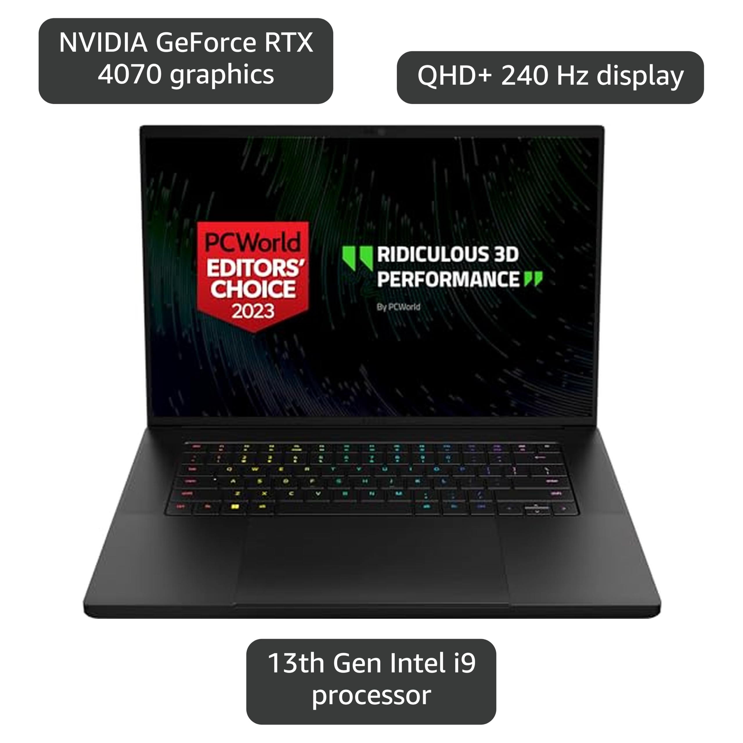 Laptop para juegos Razer Blade 16: NVIDIA GeForce RTX 4070 CPU Intel 24-Core HX de 13.a generación - 16" QHD+ 240Hz 16GB-RAM - 1TB SSD Cargador GaN compacto de aluminio CNC - Windows 11 Chroma RGB