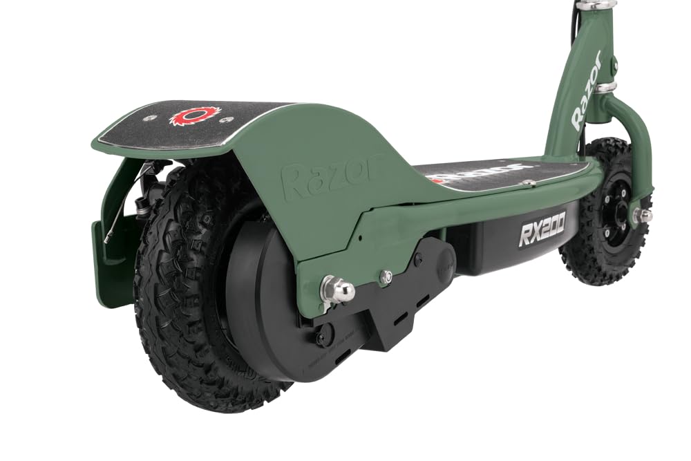 -Power Up Your Play: Amp up your adventures with the Razor RX200! This electric scooter is powered by a chain-driven motor with new gear ratio for high-torque trail use; Cruise through off-road surfaces with speeds of up to 12 mph for next-level fun and adventure.