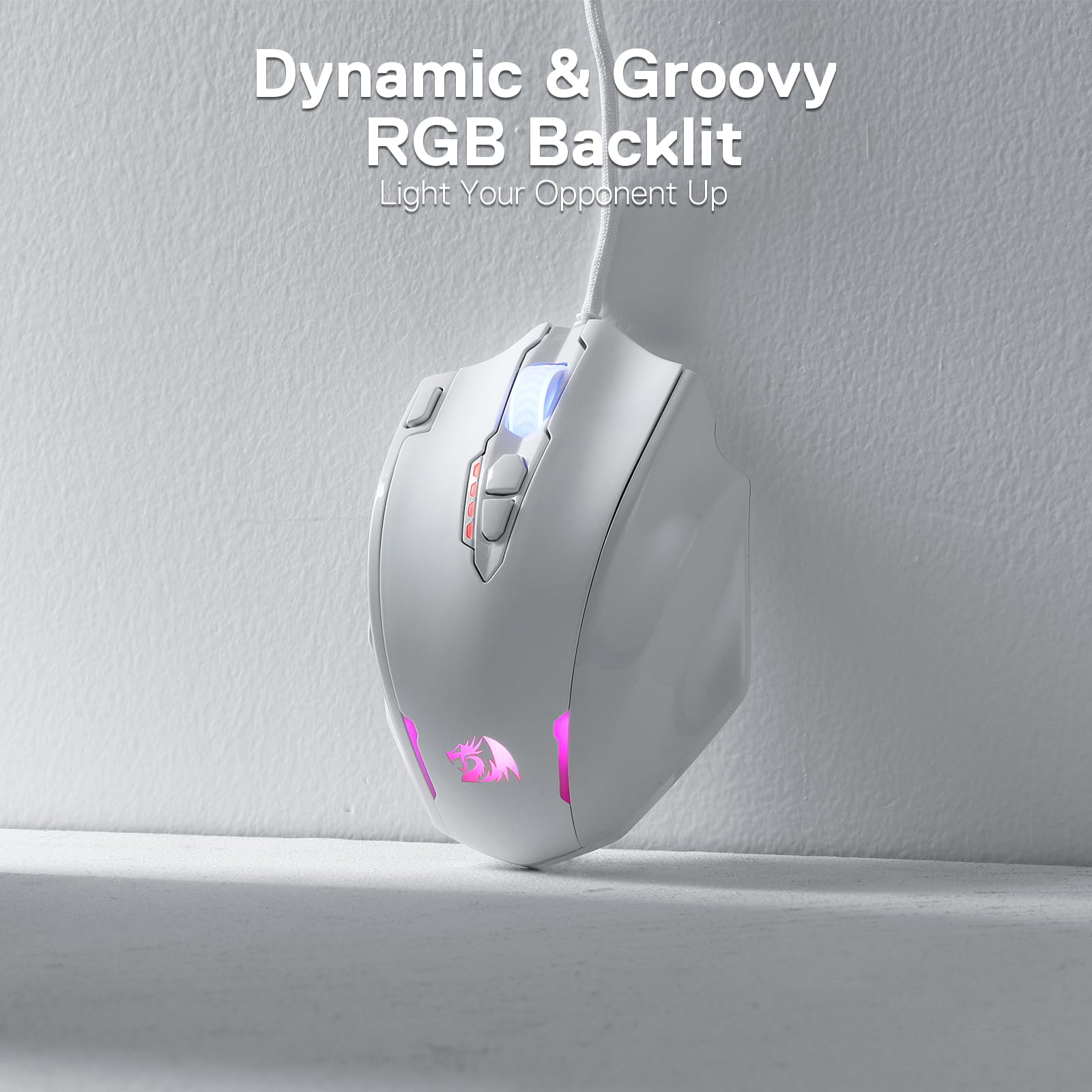 Redragon M908 Impact RGB LED MMO Gaming Mouse con 12 botones laterales, ratón ergonómico con cable óptico con máximo 12,400 DPI, alta precisión, 18 atajos macro programables, agarre cómodo, blanco