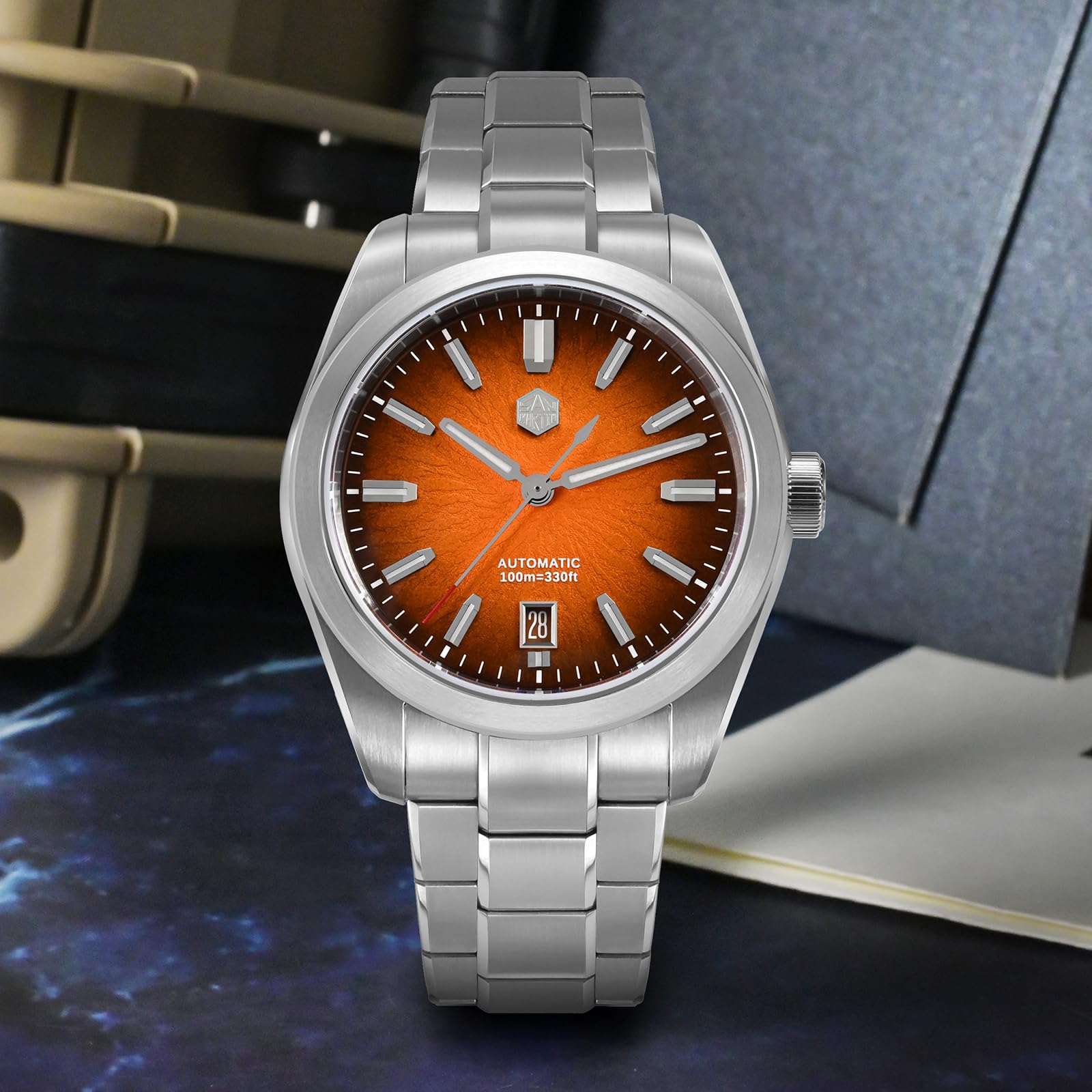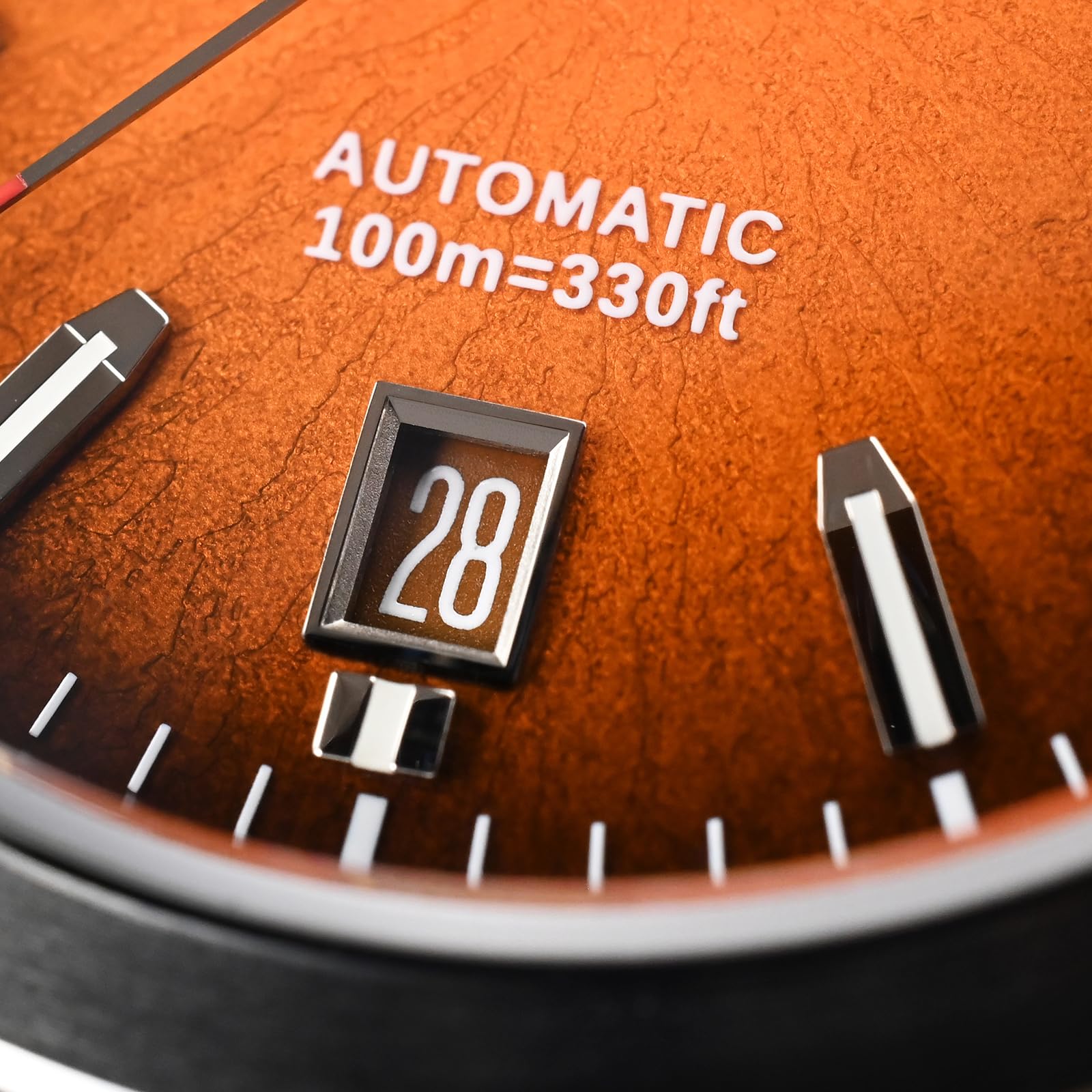 Reloj San Martin para hombre SN0144-GX, 9015 movimiento mecánico automático cristal de zafiro 10 bar reloj de buceo para hombre (esfera marrón, 39 mm)
