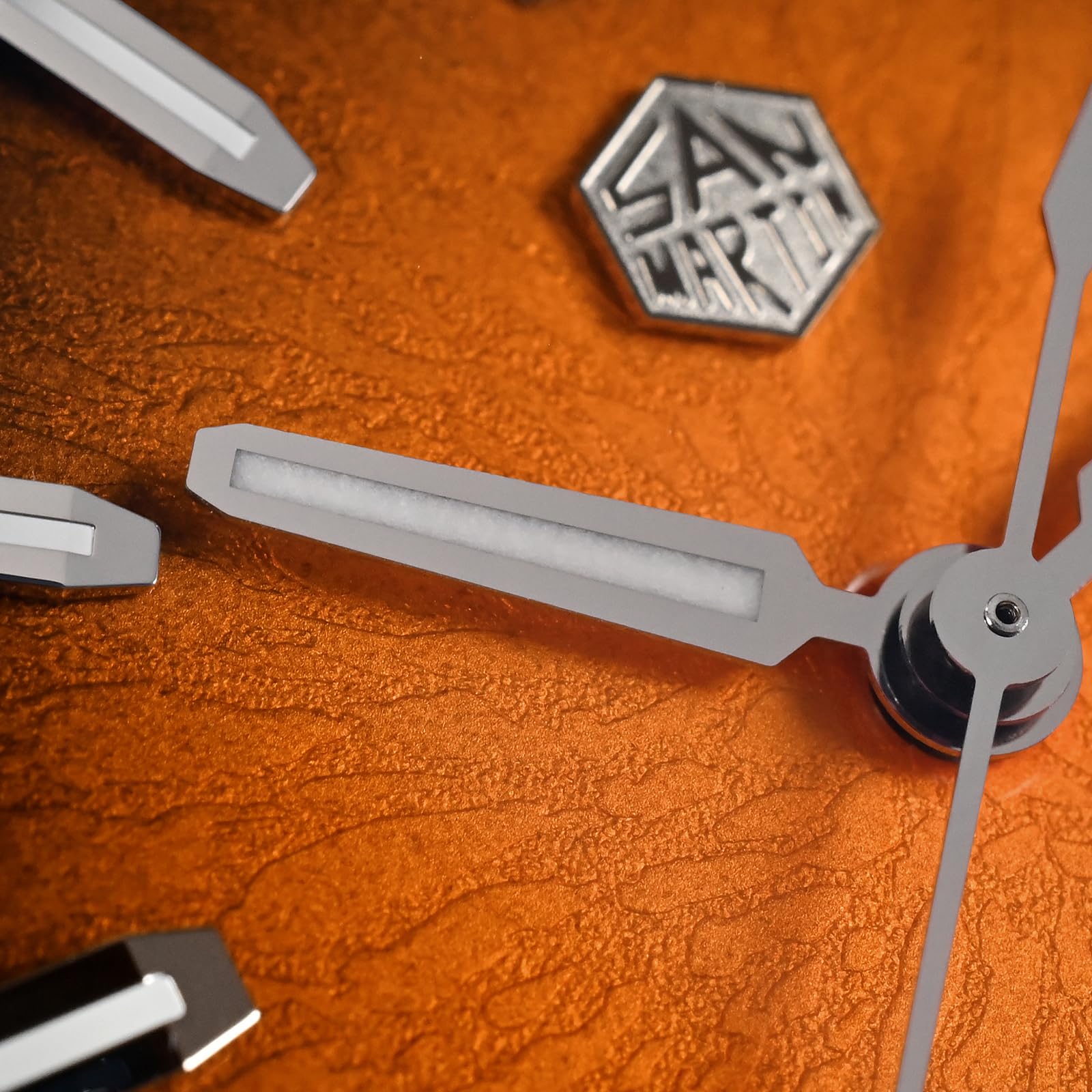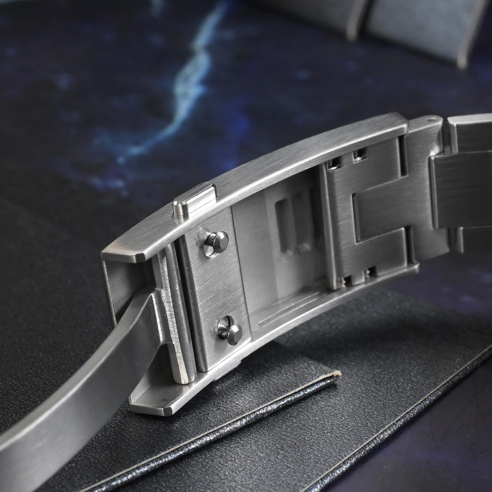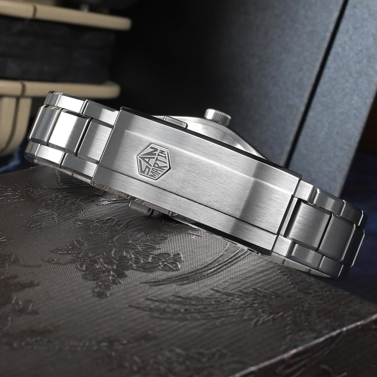 Description Brand: San Martin Model: SN0144-GX-4 Movement: Miyota 9015 [Automatic Mechanical Movement] Case: Material – 316L Stainless Steel Case Diameter: 39mm Lug to Lug Length: 46.5mm Thickness: 10.1mm(Including Crystal) Lug to Lug width: 20mm Crystal: Sapphire crystal with AR Coating Bezel: Stainless Steel Bezel Dial Color: Purple dials Hands: Bar Hands With Luminous Luminous: BGW-X1 Blue Lume, Hands and Markers Crown: Screw-down Crown Case Back: Screw-down Caseback Bracelet: 316L Solid Stainless Steel Bracelet Clasp: New Fly Adjustable Clasp Water Resistant: 10Bar=100 meters