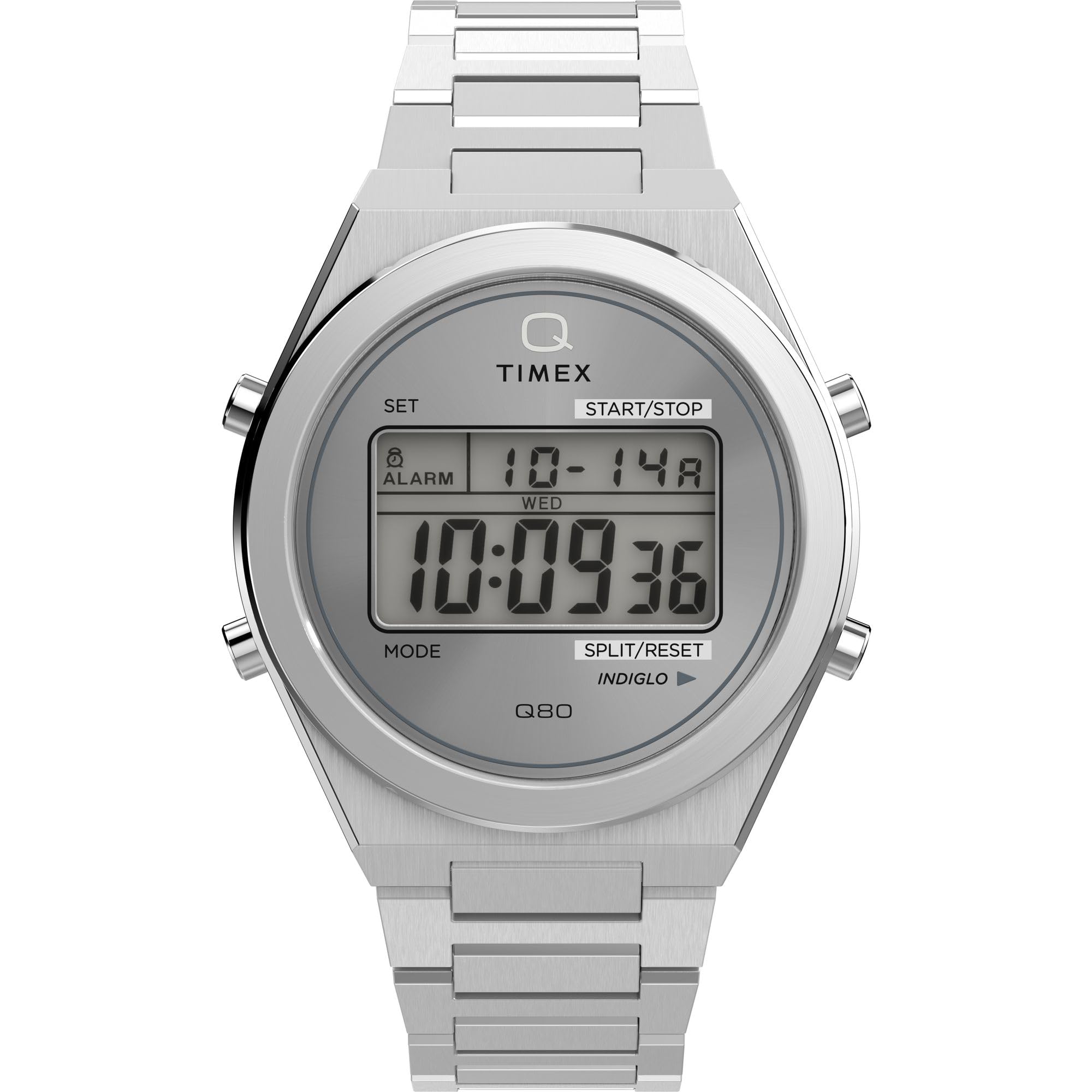 -Modern-retro Digital Display - This watch presents a rectangular digital display that combines the functionality of our T80 with the bold, unmistakable style of our Q Timex.