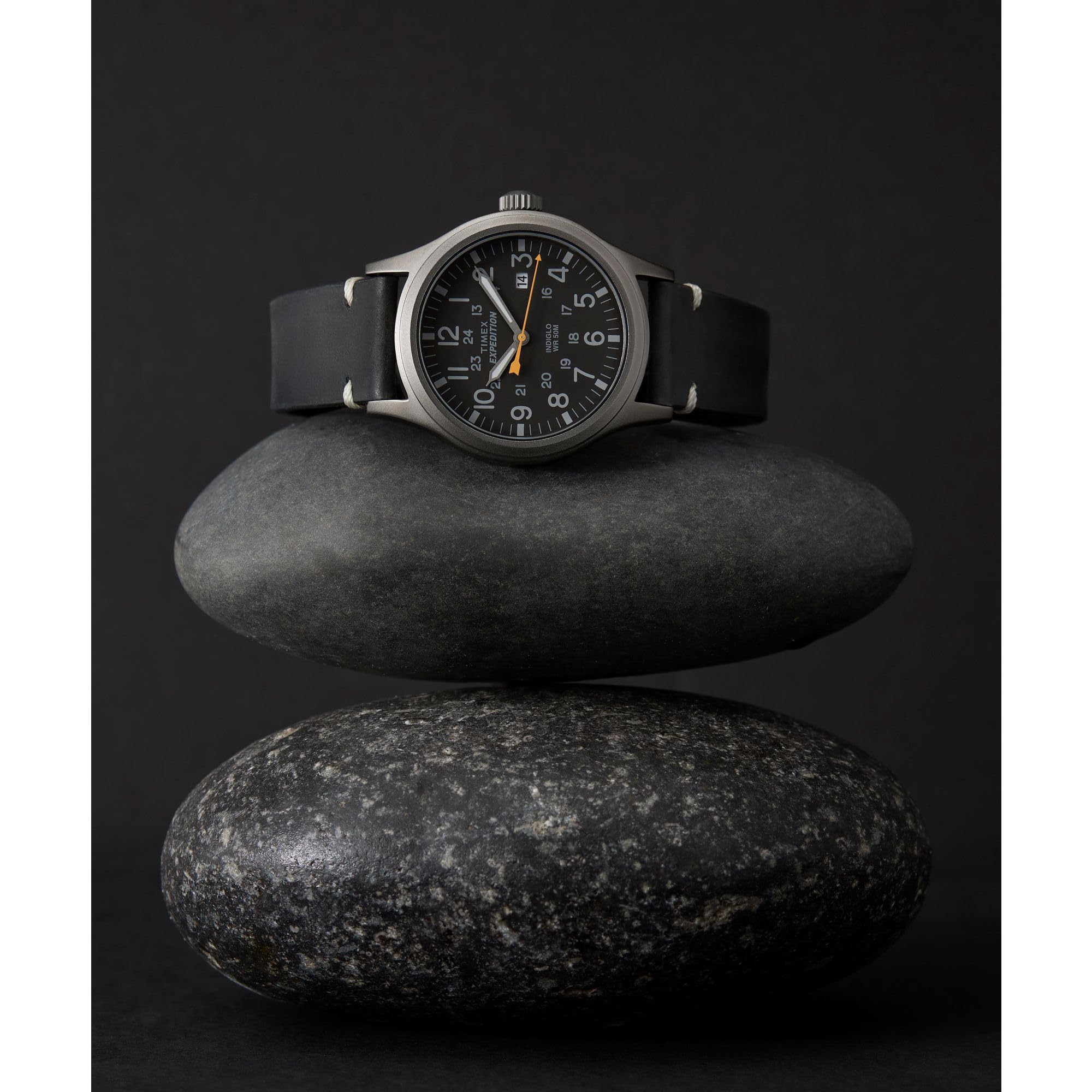 Reloj Timex Expedition Scout de 40 mm para hombre, caja gris, esfera negra y correa de cuero genuino negra