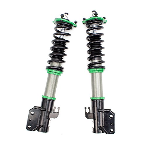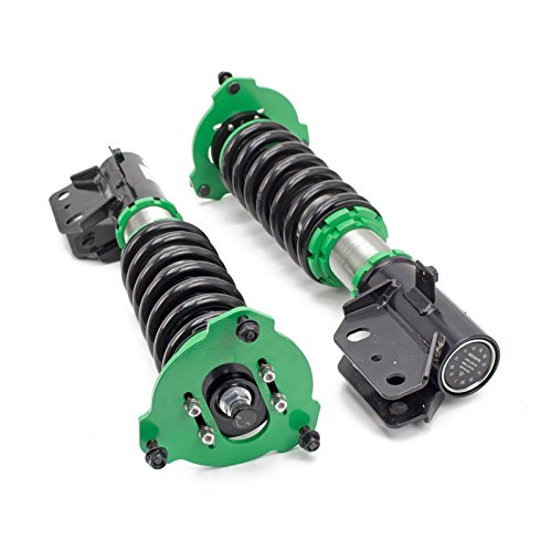 Hyper-Street II coilover suspension upgrade features mono-tube shocks with 32 clicks rebound settings and full length adjustable. Mono-tube shocks provides larger capacity for gas and oil to improve comfortable level of typical lowering vehicle. Special 32 clicks of valving allows user to fine tune rebound force settings. Independent spring tension and full length adjustable allows drop without sacrifice comfort by shorten pitch distance. Full Steel Alloy Constructions With Aluminum Hardware Mono-Tube Shocks Provide  Larger Capacity of Oil And Gas 32 Clicks of Rebound Force Adjustment Full Length Adjustment - Lowers The Car Without Ruining Spring Tension Independent Spring Tension - Custom Stiffness Without Change Ride Height