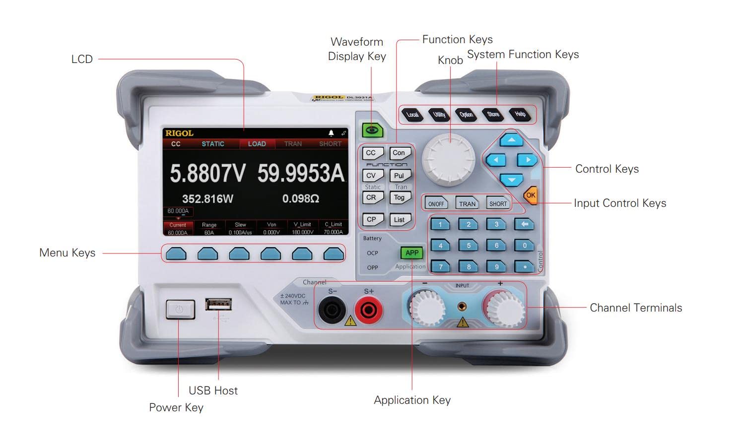 Rigol DL3031 Carga electrónica CC programable, CC 150 V/60 A, potencia total 350 W, frecuencia más alta de 15 kHz, resolución de lectura 1 mV/1 mA Rigol DL3031 Carga electrónica CC programable, CC 150 V/60 A, potencia total 350 W, frecuencia más alta de 15 kHz, resolución de lectura 1 mV/1 mA