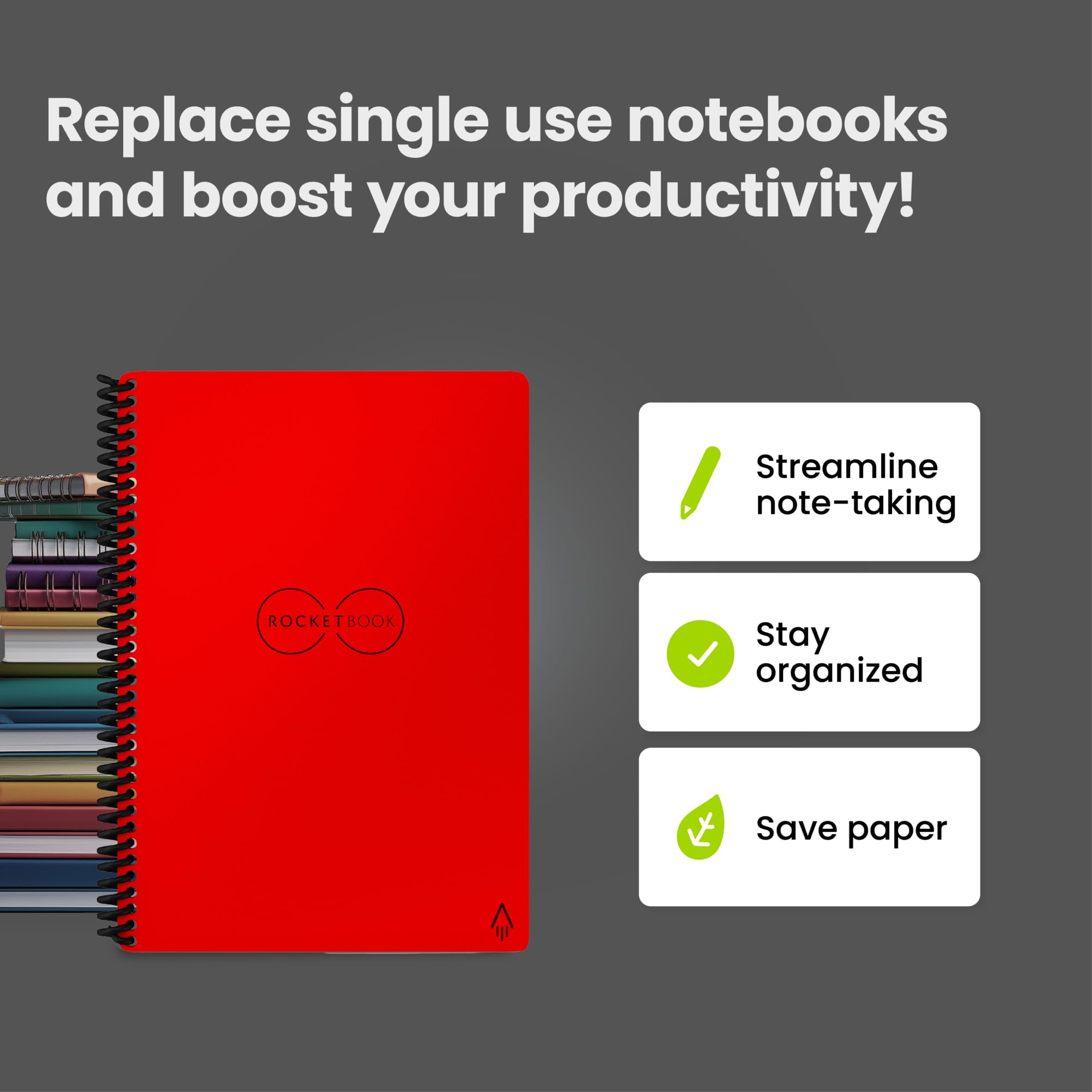-Eco-Friendly Reusability: Designed with sustainability in mind, Rocketbook notebooks help reduce paper waste with a reusable alternative. Enjoy a paper-like notebook that can be used repeatedly, allowing you to save work and erase everything else.