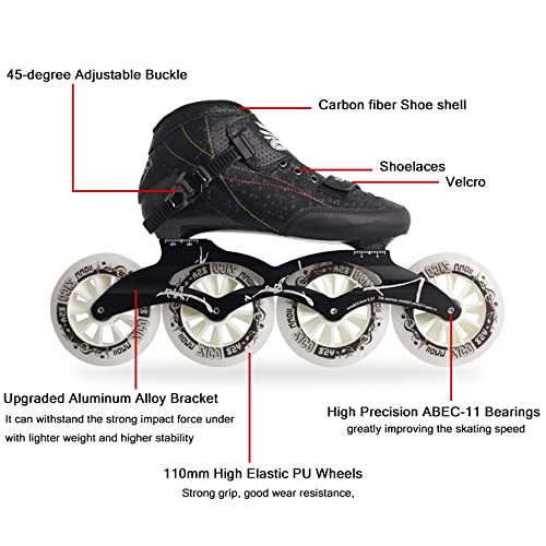 -Speed Faster: This Skates are designed for speed. The shell is made of carbon fiber. It is light and very suitable for competitions and long-distance skating on the street. The fast speed allows you to experience "speed and passion"