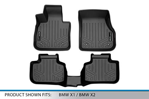 SMARTLINER Juego de alfombrillas de ajuste personalizado para todo tipo de clima, 2 filas, color negro, compatible con BMW X1 2016-2022 / BMW X2 2018-2022