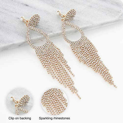 - MATERIAL: Clip on earrings made of delicate, elegant and sophisticated sparkling clear Austrian crystal rhinestones setting, for the most dazzling sparkle, with a non-slip rubber backing to hold your earrings in place.