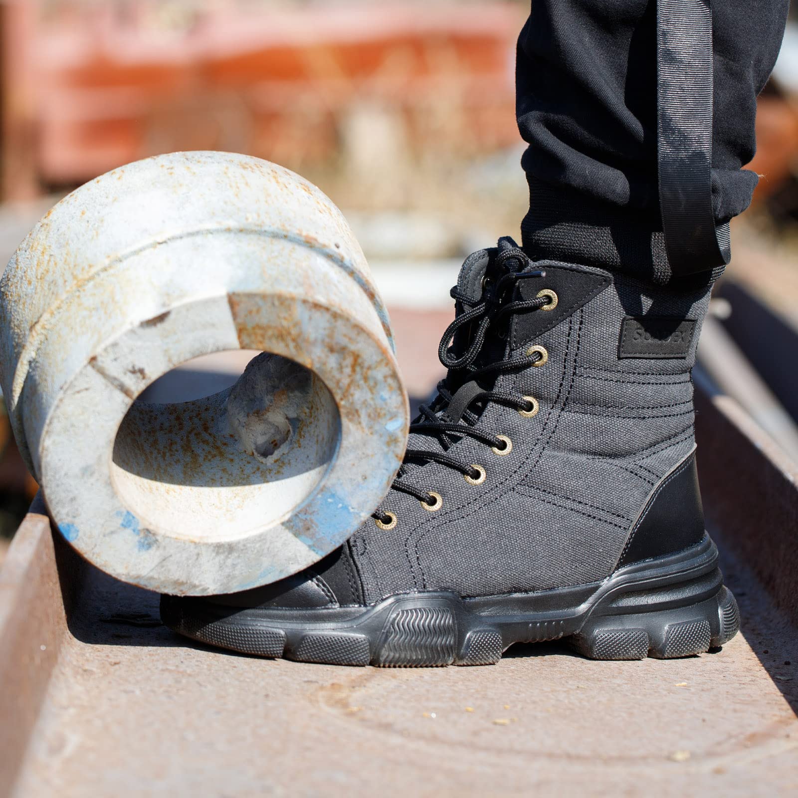 -【Puncture-Proof】Steel toe boots with lightweight Kevlar-midsole is built to protect your feet from being punctured by sharp objects like nails, steel bar, etc.