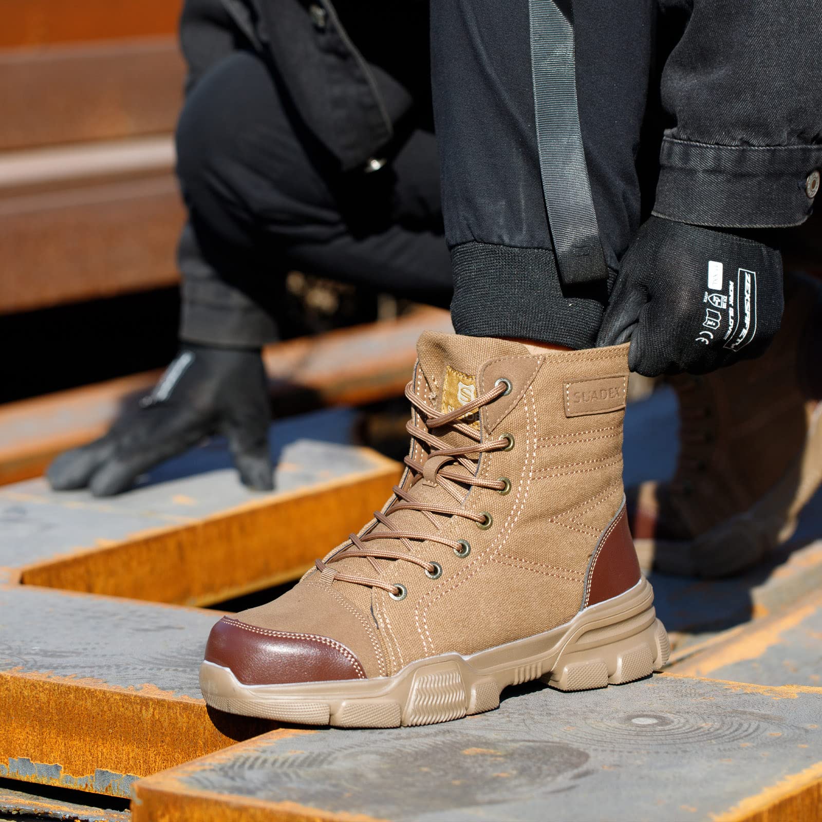 SUADEX Botas con punta de acero para hombres y mujeres, indestructibles, antideslizantes, cómodas botas de trabajo, zapatos de construcción de seguridad