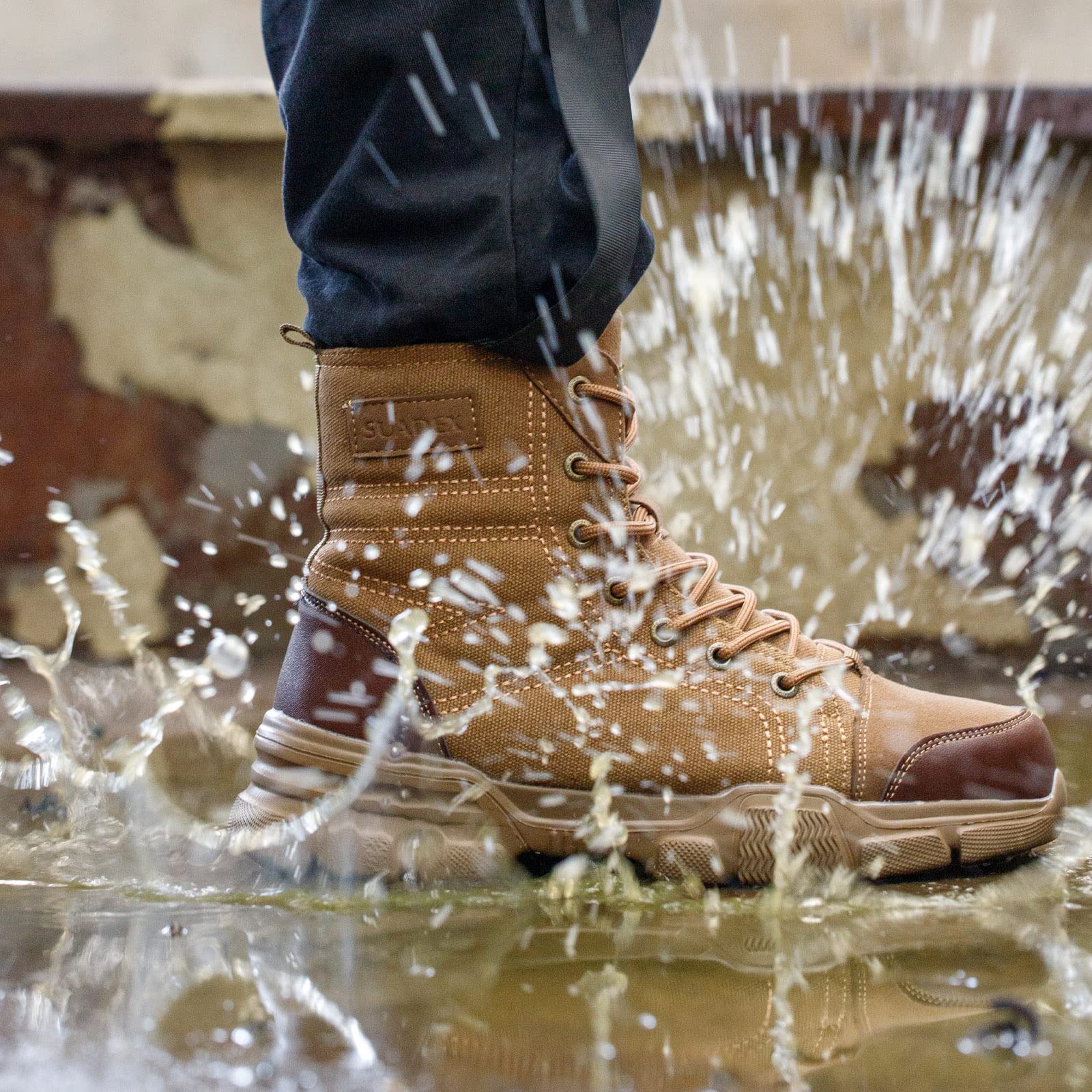 -【Comfortable & Breathable】Work boots for men use breathable lining, making shoes fit your feet more, high top design to support your ankle, provides comfort throughout the day at work.