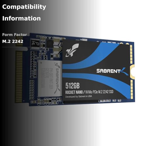 SABRENT 512GB Rocket NVMe PCIe M.2 2242 SSD interno de alto rendimiento y bajo consumo sin DRAM (SB-1342-512)
