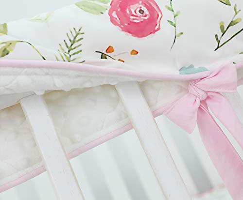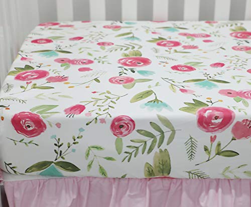 Juego de 4 protectores de riel de cuna Boho Floral Nursery Ropa de cama de bebé Falda de cuna con volantes Juego de cubierta de riel de cuna (Rosas rosas)