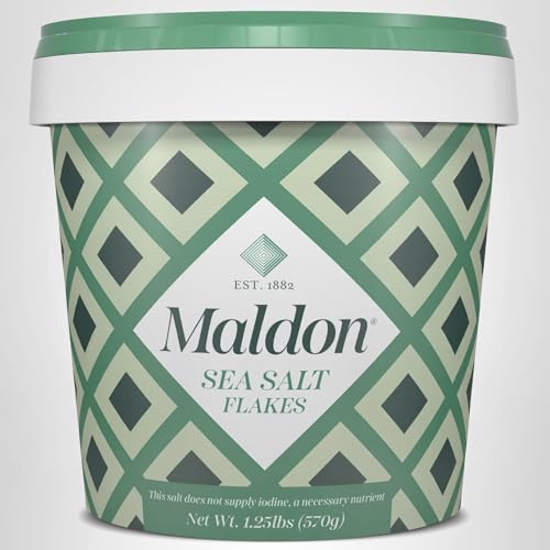 Sal Maldon, escamas de sal marina, 20 oz (570 g), bote resellable – Kosher, natural, escamas de sal gourmet únicas en forma de pirámide, perfectas para una amplia variedad de platos, cosechadas a mano durante cuatro generaciones