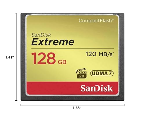 and transfer speed (up to 120MB/s); 16GB - 128GB cards only. Ideal for use with mid-range to high-end DSLR cameras and HD camcorders, the SanDisk Extreme CompactFlash Memory Card delivers first-rate read/write speeds to catch fast action shots and enable quick file transfers. Take advantage of burst-mode photography with the card's write speeds of up to 85MB/s (567X) and enjoy efficient workflow with its transfer speeds up to 120MB/s (16GB - 128GB cards only). With capacities up to 128GB, this memory card provides plenty of storage for Full HD videos and RAW photos.