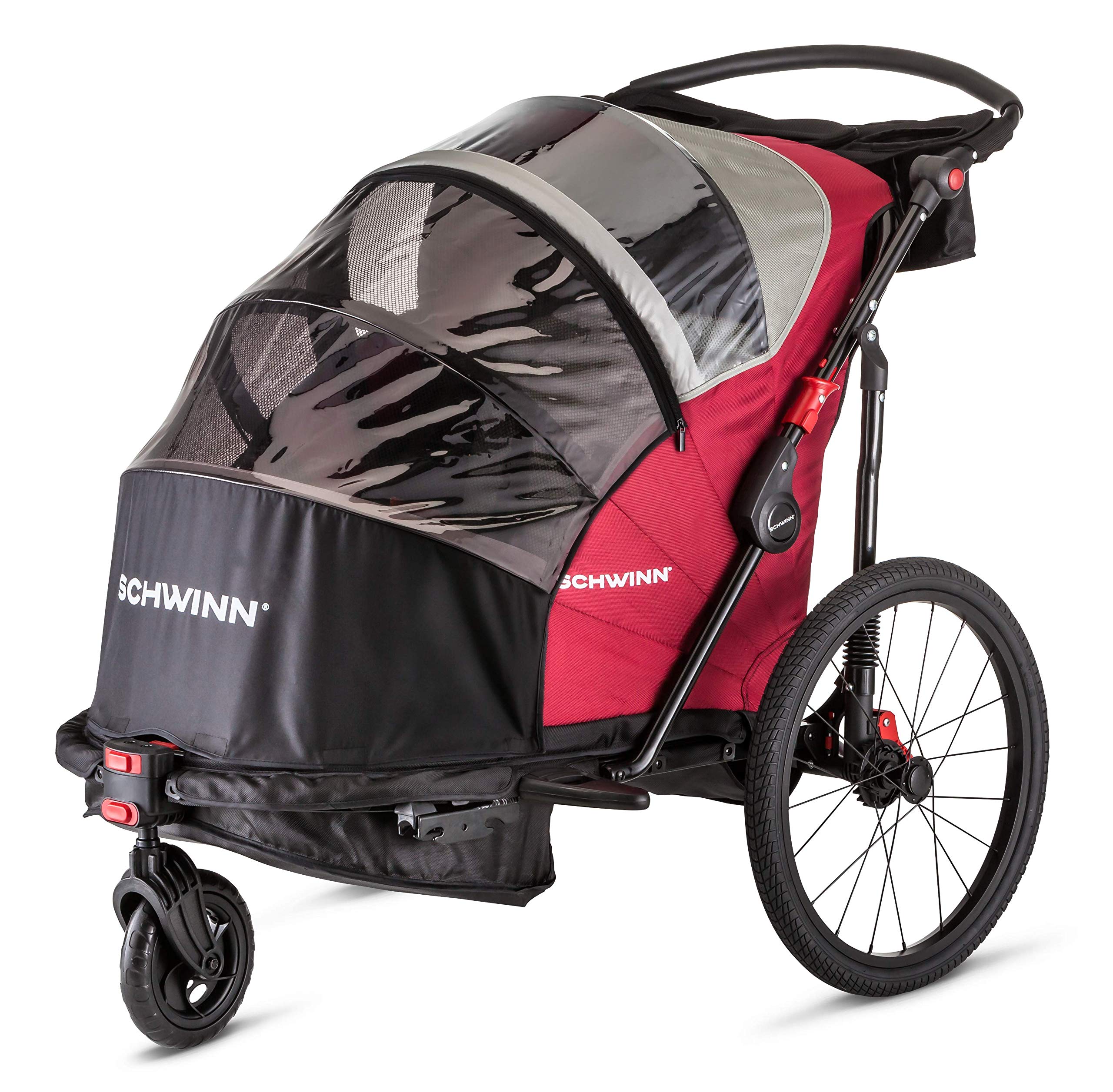 Schwinn Joyrider Deluxe - Cochecito doble para remolque de bicicleta para niños, máximo de 2 niños con peso total de 80 libras, toldo, neumáticos llenos de aire de 20 pulgadas, rojo