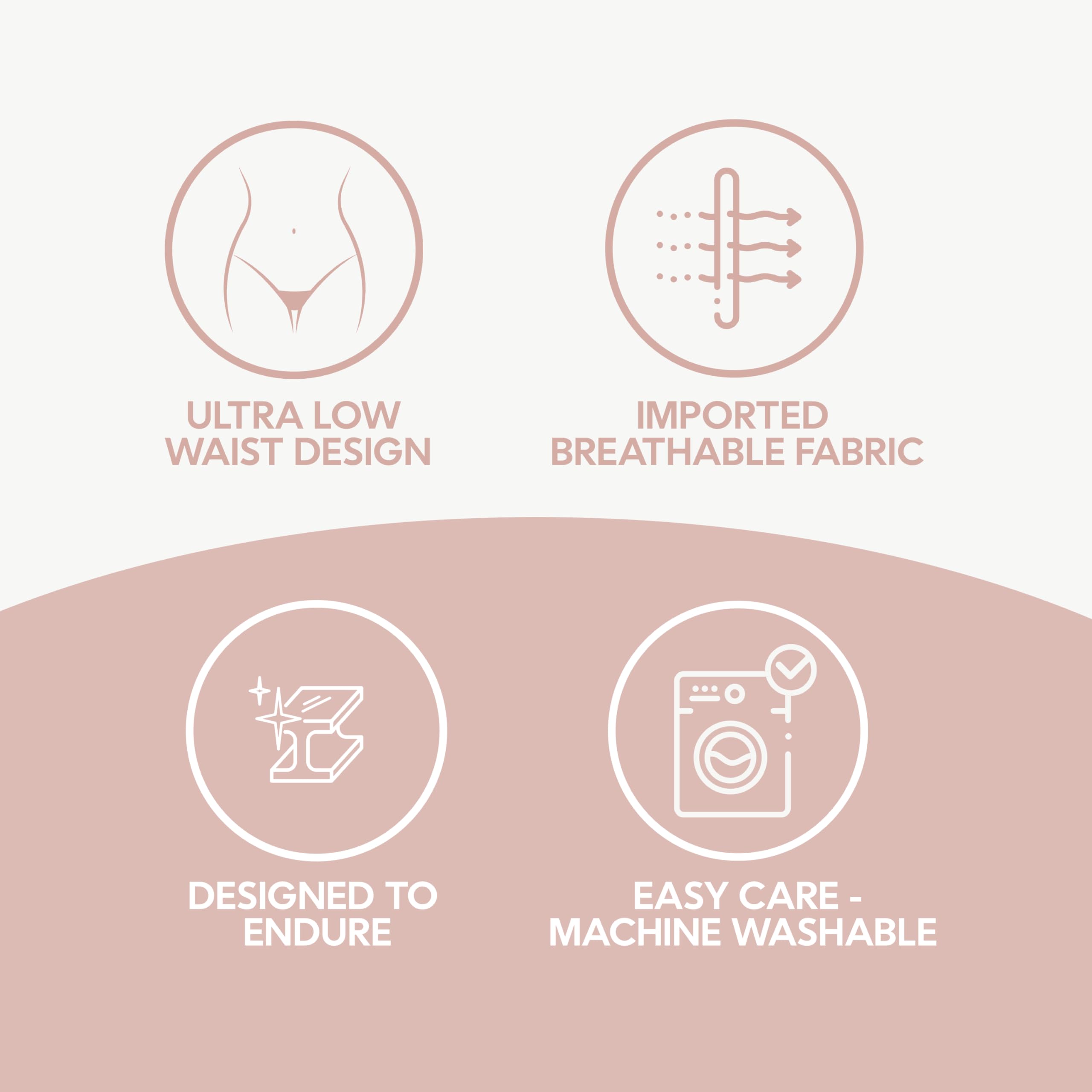 -Very low waist and T-string back design. The ultra-low waist enhances your silhouette, while the T-string back offers a daring, minimal look. Great under low-rise jeans or skirts.