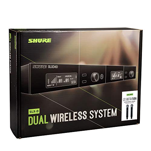 Shure SLXD24D/B58 Sistema de micrófono inalámbrico digital de doble canal - Incluye dos transmisores de mano SLXD2 con cápsulas de micrófono vocal BETA 58A, receptor de montaje en rack SLXD4D | Banda G58 (SLXD24D/B58-G58)