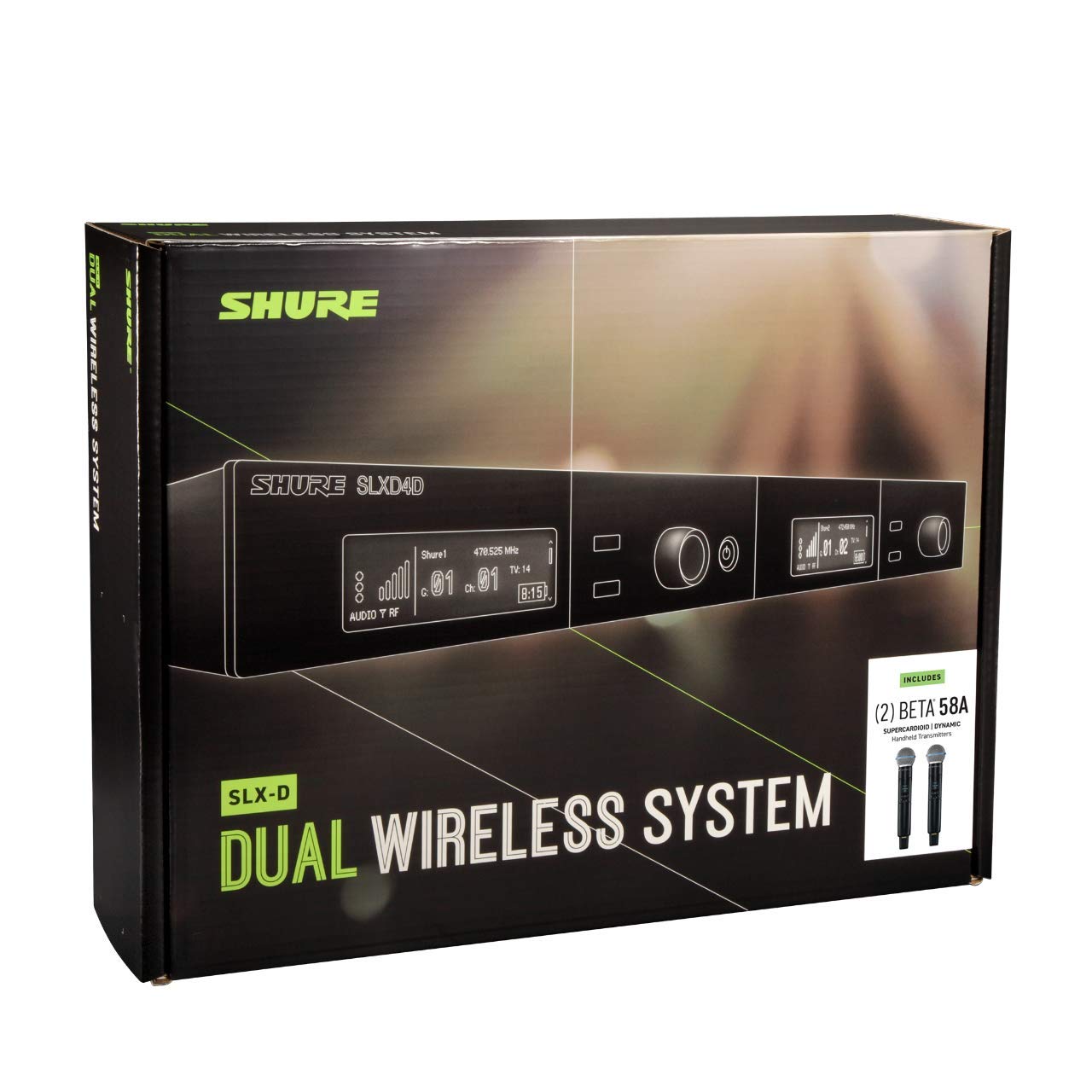 SHURE SLXD24D/B58 Sistema de micrófono inalámbrico digital de doble canal: incluye dos transmisores de mano SLXD2 con cápsulas de micrófono vocal Beta 58A, receptor de soporte de bastidor SLXD4D | Banda H55 (SLXD24D/B58-H55)