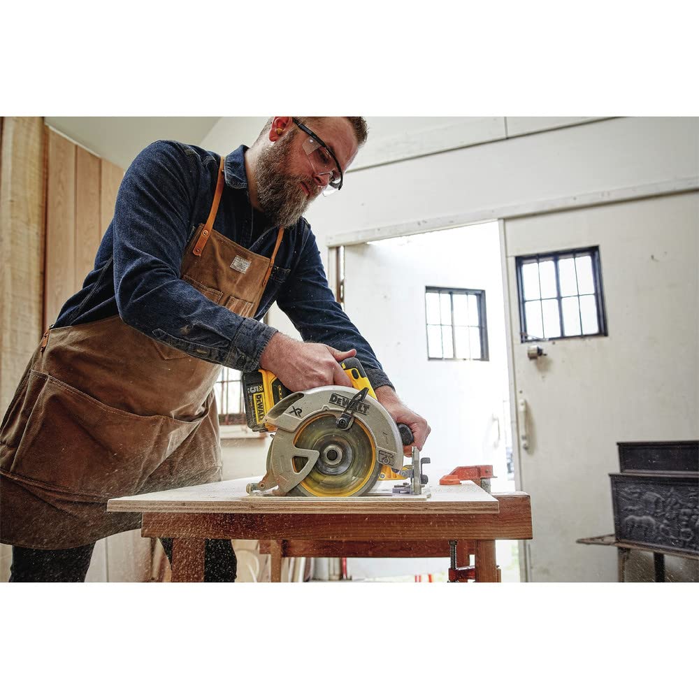 This DEWALT 20V cordless circular saw gives you with the power and depth-of-cut of a corded circular saw, but with the portability and convenience of cordless. DEWALT brushless motor technology delivers excellent performance and runtime when cross cutting 2x material and ripping sheet goods.