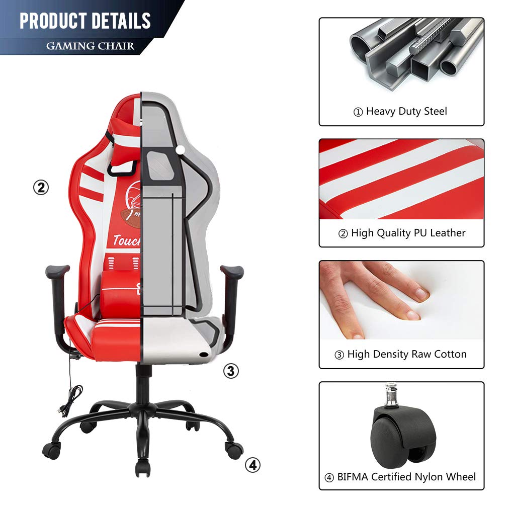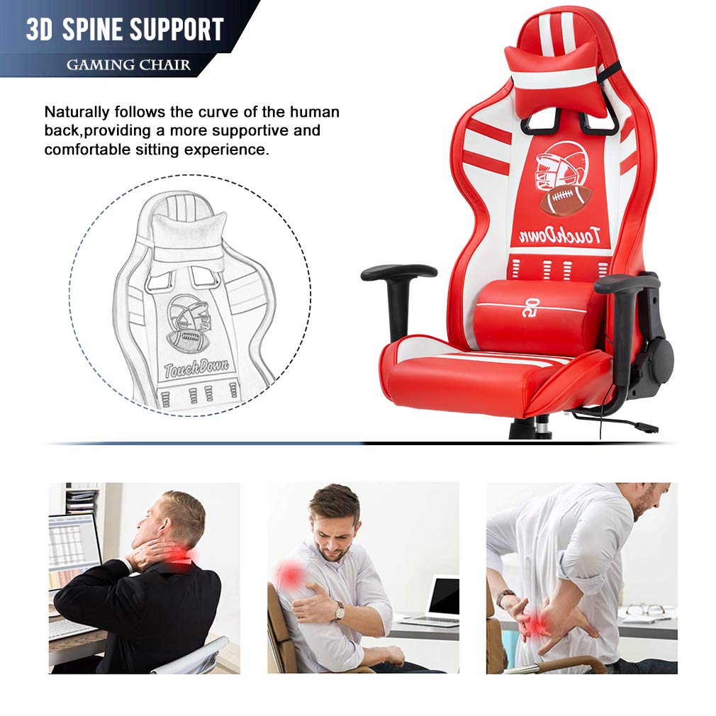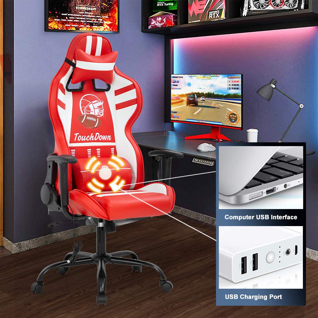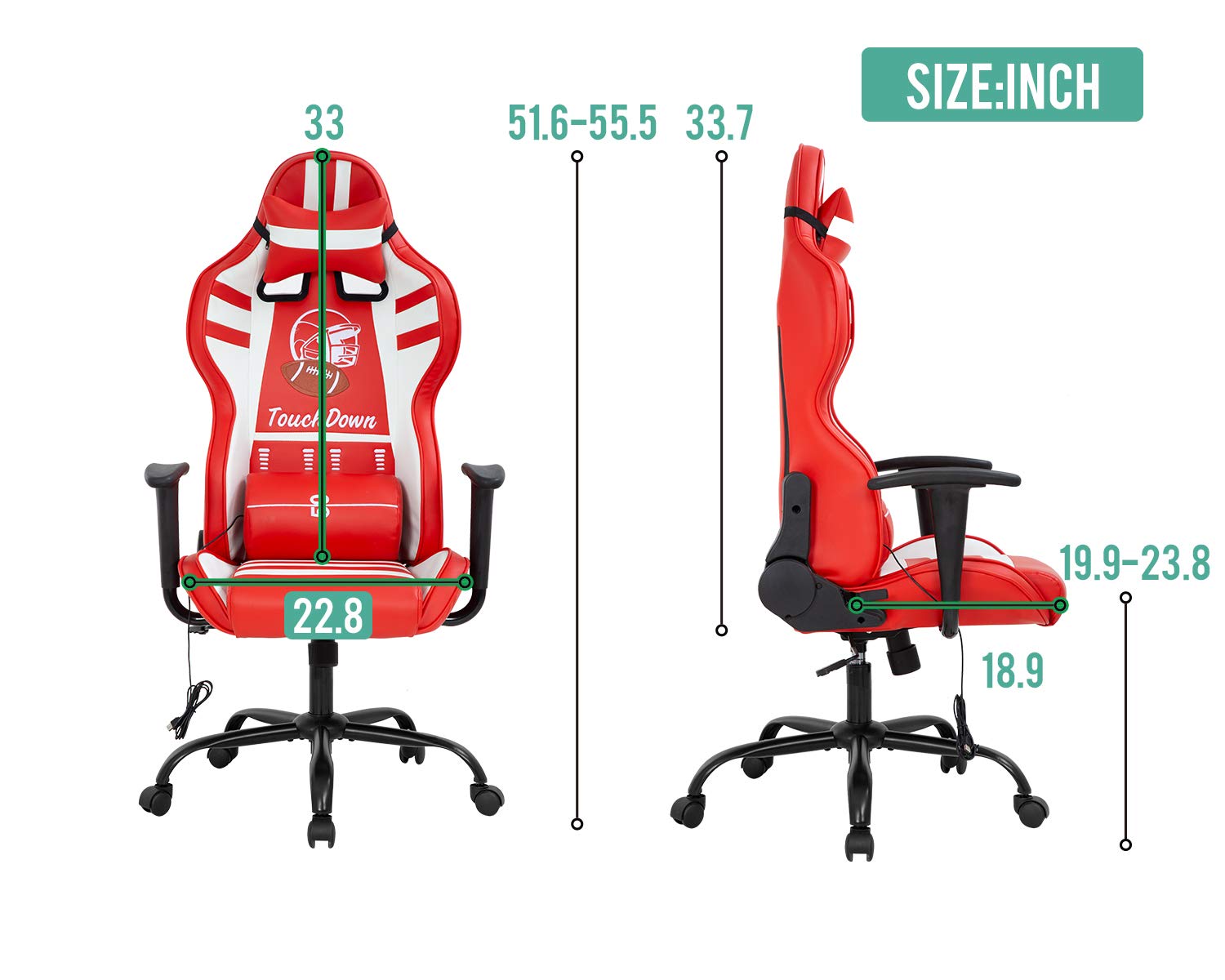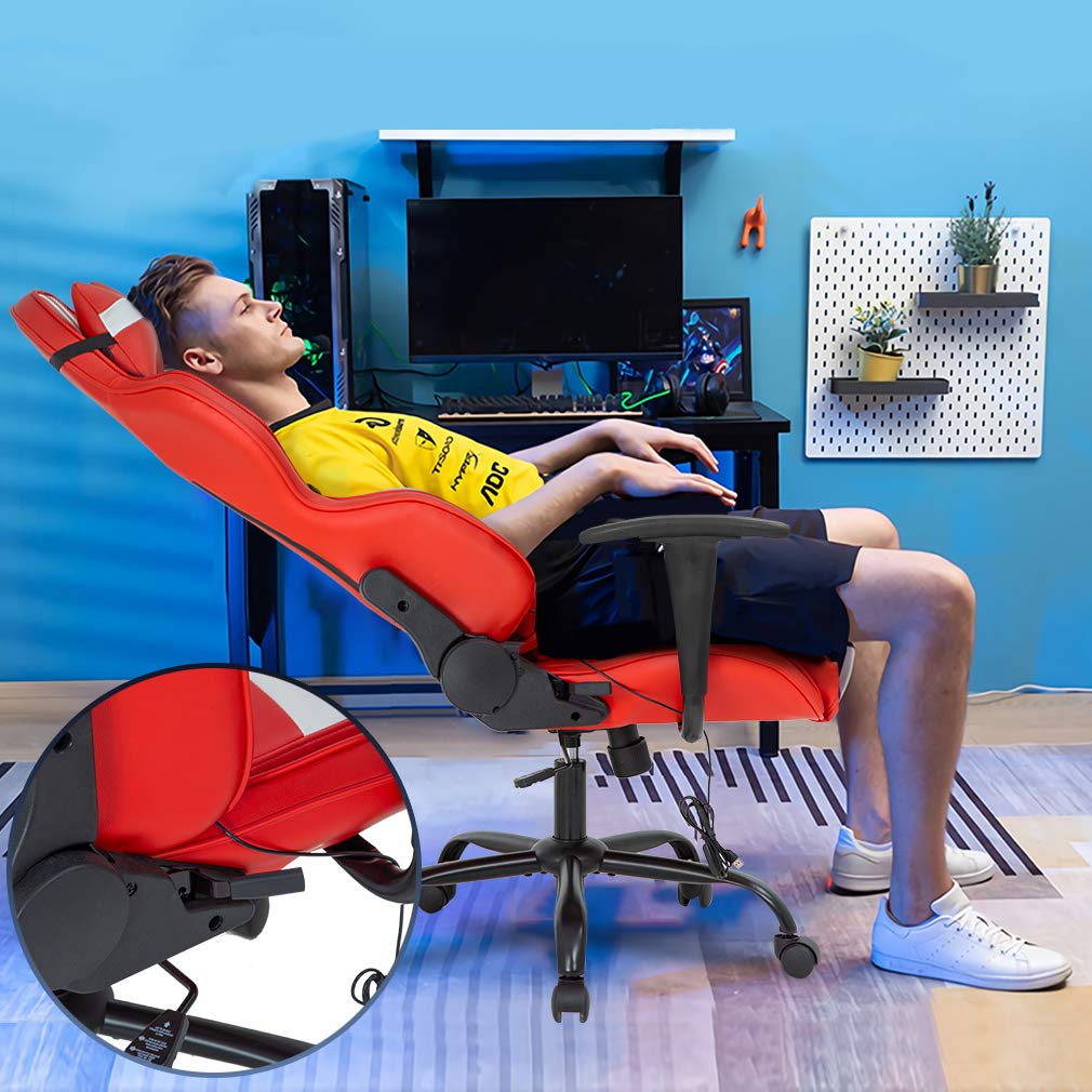 Racing computer chair have a adjustable massage lumbar cushion with remote control, if you don't want to use the massage function, you can roll up the data cable and put it in the lumbar cushion, massage function does not affect the use of the desk chair. Furthermost, the office chair swivels for multitasking convenience, and its five-legged base with durable casters allows for smooth-rolling mobility from one area to another. Feature Follow the desk chair instructions, easy to set up. Adjustable seat height satisfies your different needs of table height. Chair cushioned seat which is full of high-density sponge offers comfort. Rocking mechanism with seat tilt great for you. Ergonomic racing chair with an adjustable backrest with a 90°135° safety angle. Massage gaming chair: Fixed Armrest; Smooth rolling casters; Removable headrest pillow and lumbar cushion. Gaming chair big tall racing chair office chair PU leather chair desk chair adjustable chair ergonomic chair big tall task chair computer chair mid-back swivel chair rolling chair gaming racing big tall office PU leather desk adjustable ergonomic task computer mid-back swivel rolling chair desk big tall chair adjustable chair ergonomic task chair PU leather chair office big tall chair armrest chair executive mid-back chair Task chair office computer desk chair chair suitable big tall adjustable chair office chair ergonomic task chair computer chair PU leather big tall chair executive chair swivel chair rolling chair office adjustable desk big tall task computer ergonomic executive swivel rolling chair PU leather chair.
