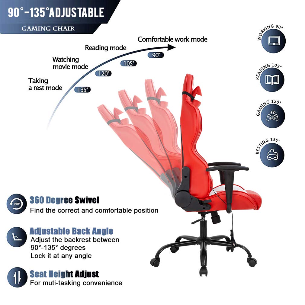 -✿Comfortable Seating - Gaming computer chair ergonomic curved high back perfectly supports your whole body very well, thick cushion padded with high density shaping sponge that soft and comfortable for long time use. In the meantime, racing chair backrest locking in any position when you recline, have the safe angle 90-135 degree.