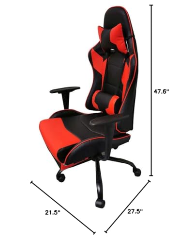 Features: Including headrest and lumbar cushion High quality PU leather and high density thick sponge Sturdy and foldable base with 5 casters, which can be rotated 360 Degree for easy movement High, wide and straight back, move back 90 to 175 degrees, adjustable down to a comfortable position Dimension: Maximum loading capacity: 250 LB Chair Sitting size: 47.6-51.4(H) 27.5(W) 21.5(D) Chair lying size: 29.5-33.3(H) 27.4(W) 63.6(L) Package Include: 1 Racing style gaming chair