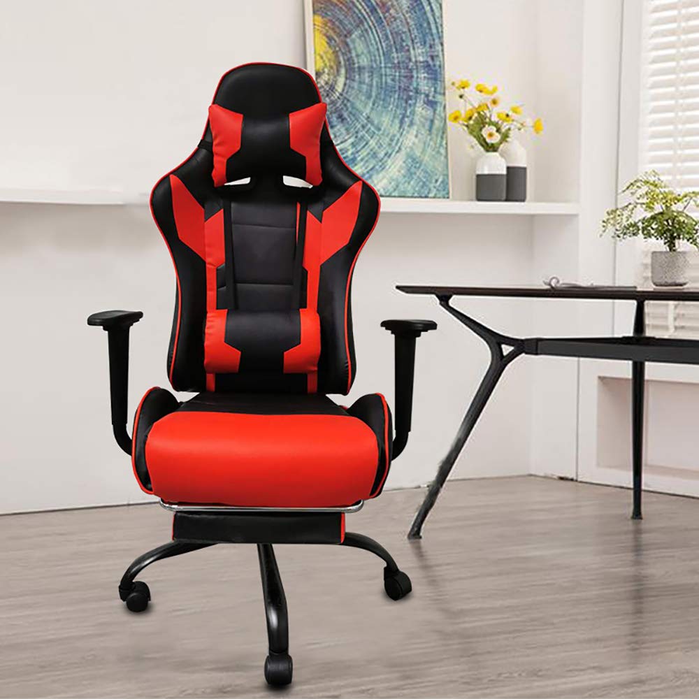 Silla para juegos Silla de oficina, respaldo alto ajustable Silla de escritorio de cuero de PU Silla para juegos para PC Silla giratoria ejecutiva y ergonómica Soporte lumbar con reposapiés Silla giratoria moderna para tareas (rojo)