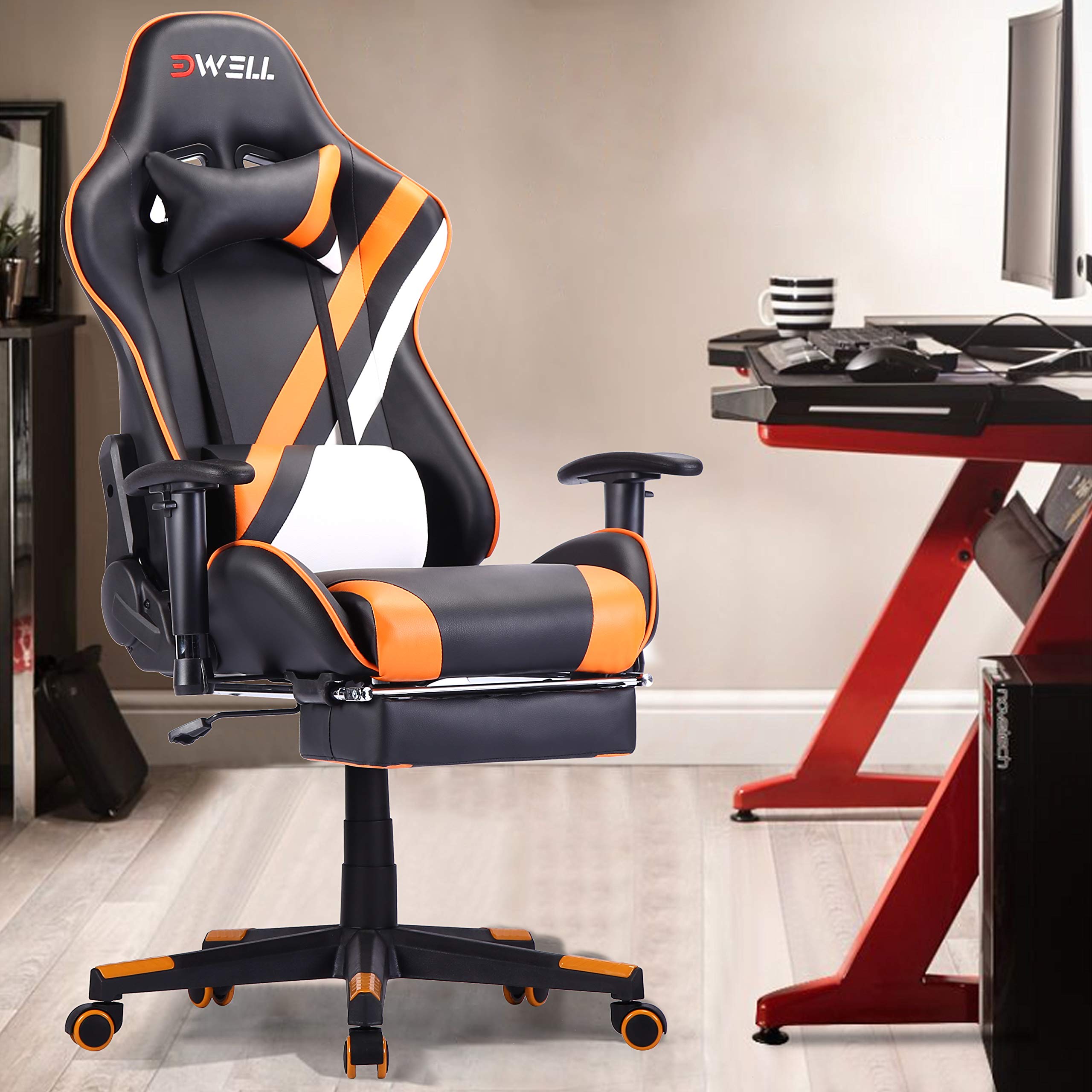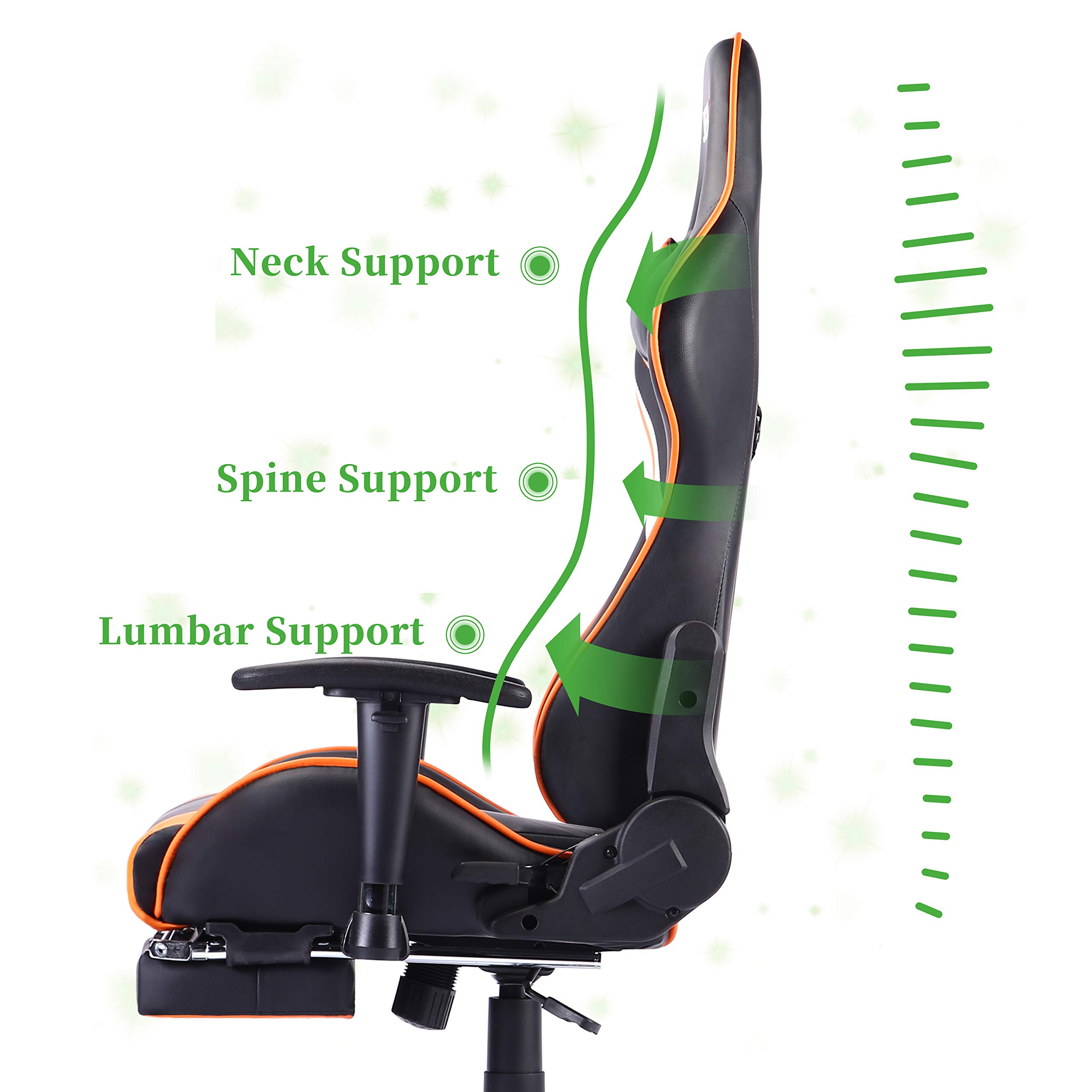 Silla Gaming Silla Gamer Sillas Gaming Silla para Computadora Masaje Respaldo Alto Ergonómico Ajustable con Reposacabezas y Soporte Lumbar (Naranja)