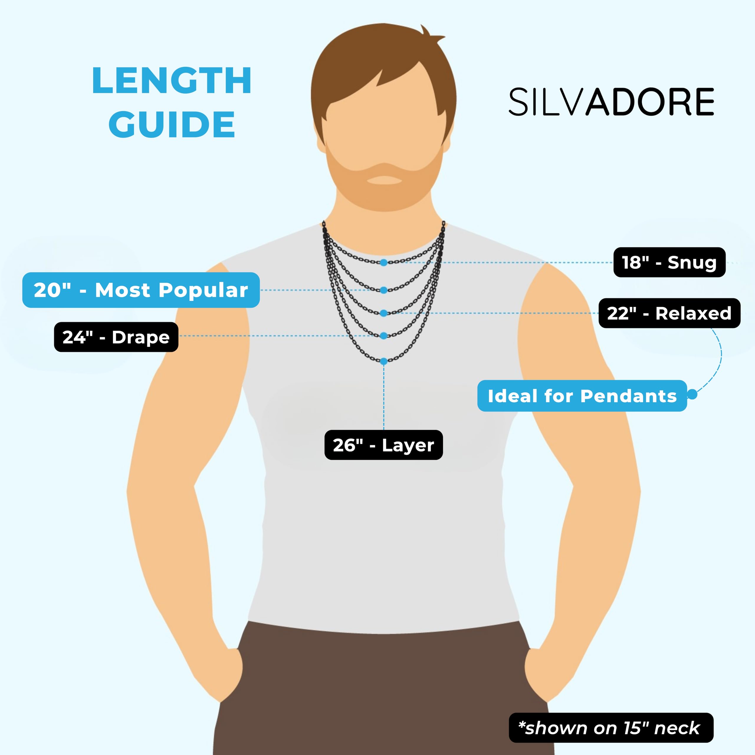 Silvadore Cadena de cuerda de plata para hombre (0.157 in, 24 pulgadas) Collar para hombre chapado e