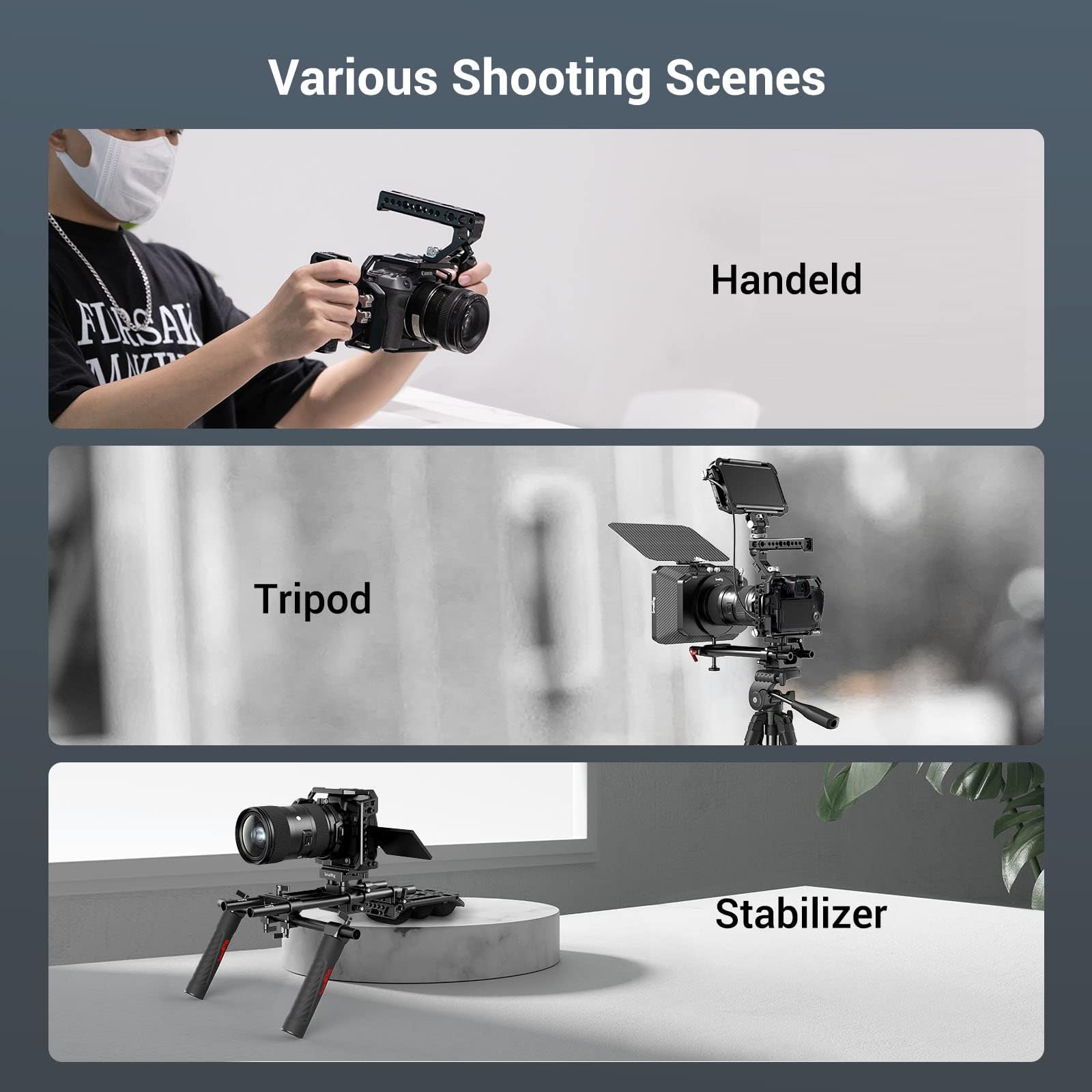 -VERSATILE INTERFACE: Comes with multiple 1/4'' threaded holes, 3/8'' threaded holes and 3/8 locating hole for ARRI standard allowing mount of accessories. SMALLRIG Top Handle 1984 can be attached for hand-held shooting. SMALLRIG Cable Clamp can also be added to protect the for HDMI cable and port