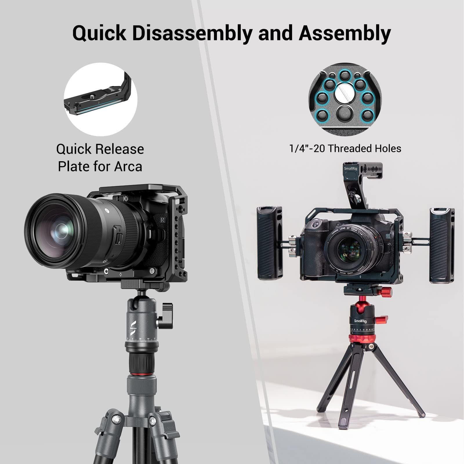 -BUILT-IN COLD SHOE: Features a built-in cold shoe on the top of the cage which is super convenient to mount on SMALLRIG double ballhead mount or mini ballhead mount. SMALLRIG microphone shock mount 1859 can also be attached