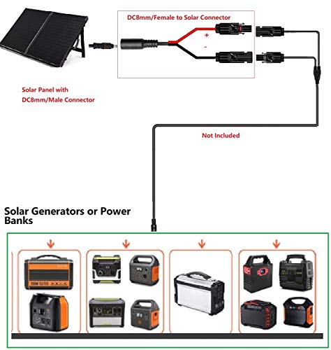 - DC 8mm Female to Solar Connector Adapter Cable Converter Compatible Connect 60W 100W 120W 200W Portable Solar Panel Power Station Solar Generator DC 8mm Female to Solar Connector Adapter Cable Converter Compatible Connect 100W Portable Solar Panel Power Station Solar Generator