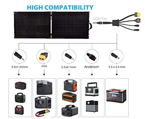 - Make sure this fitsby entering your model number. - Input 8mm & Output:Anderson Power Pole XT60 5.5*2.1 5.5*2.5 3.5*1.35 mm Connector - Foldable Solar Panel Convert Charger Solar Generator Portable Power Station - Wide Application to Portable Solar Panel Foldable Solar Panel ,Perfectly Compatible withGZ Solar Panels and SolarSaga 100W - High-Qulity Material Ensures Transmission in a Stable Situation. cord Very Thick and Durable. Please Check the Positive and Negative Pole of your Solar Panel Solar Connector Carefully to Make sure a Right Connection - 24/7 Free Technical Support Service, 100% Customer Satisfaction Service Product Specifications: DC8 Famale Connector to XT60 /5.5*2.1/ 5.5*2.5/ 3.5*1.35 mm Connector Solar Charge Cable Product Length:0.6M/20in Compatibility& Application: Solar Panels:12V/24VSolar Panel ,Portable Solar Panel Foldable Solar Panel ,Perfectly Compatible with GZ Solar Panels and Jk 100W Solar Charge For Portable Power Station Solar Generator Lipo Battery Pack What's in the Box Solar Charge Cable Note Before Purchasing, Please Confirm Whether it Conforms to your Solar Panel with 8mm Connector