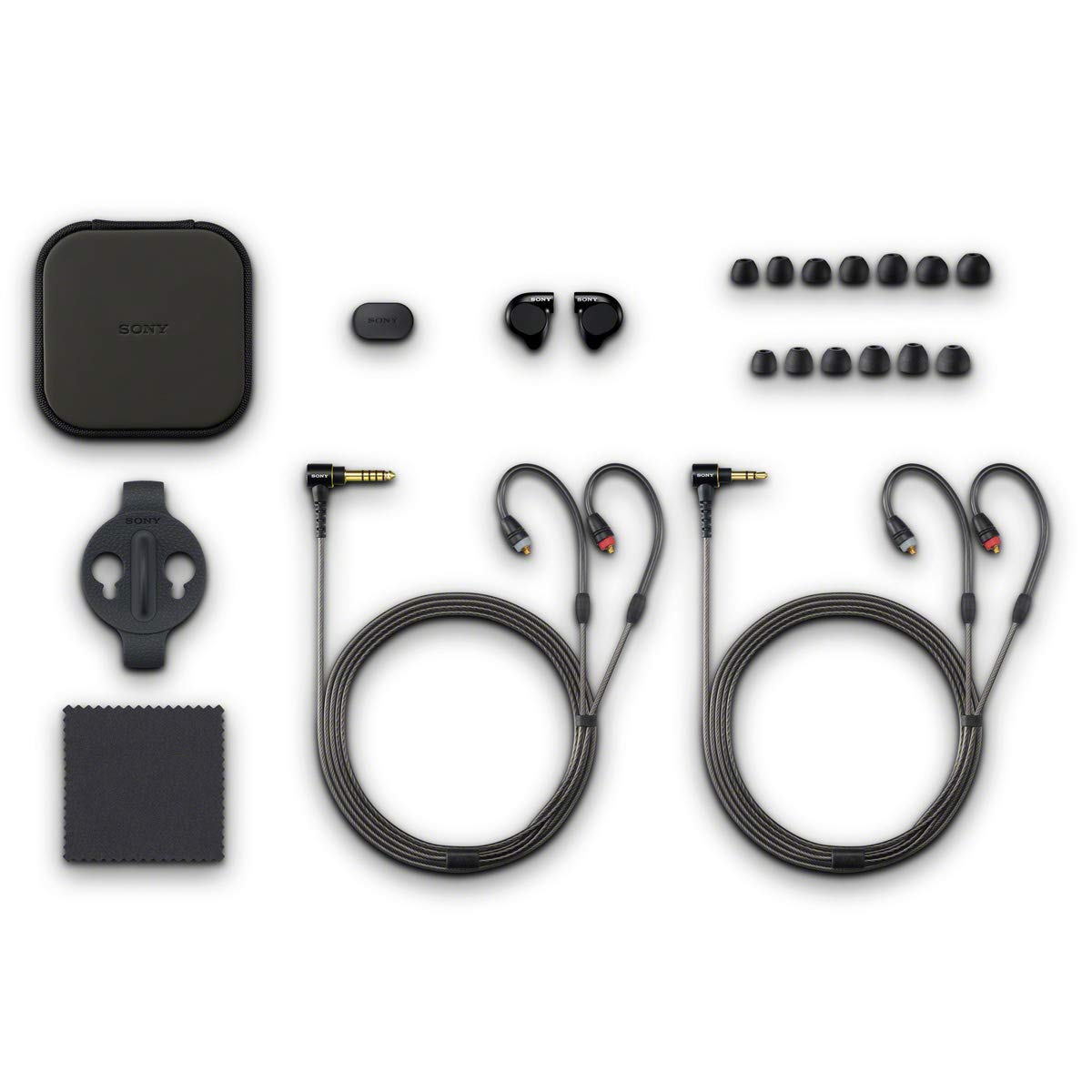 In-Ear monitor headphones designed for musicians to evolve the expression and emotion of your performance. With 4x Sony original balanced armature units, high level sound isolation, and stable fit, you can play with accurate tonal balance on stage. The unique t-shaped balanced armature delivers more linear motion and clean, faithful high notes. Cord Length: Approx. 3.94 ft, silver-coated OFC strands, ear hanger, L-shaped gold-plated stereo mini plug, Approx. 3.94 ft, silver-coated OFC strands, ear hanger, L-shaped gold-plated balanced standard plug; Frequency Response: 5–40,000 Hz; Cord Type: Y-type.