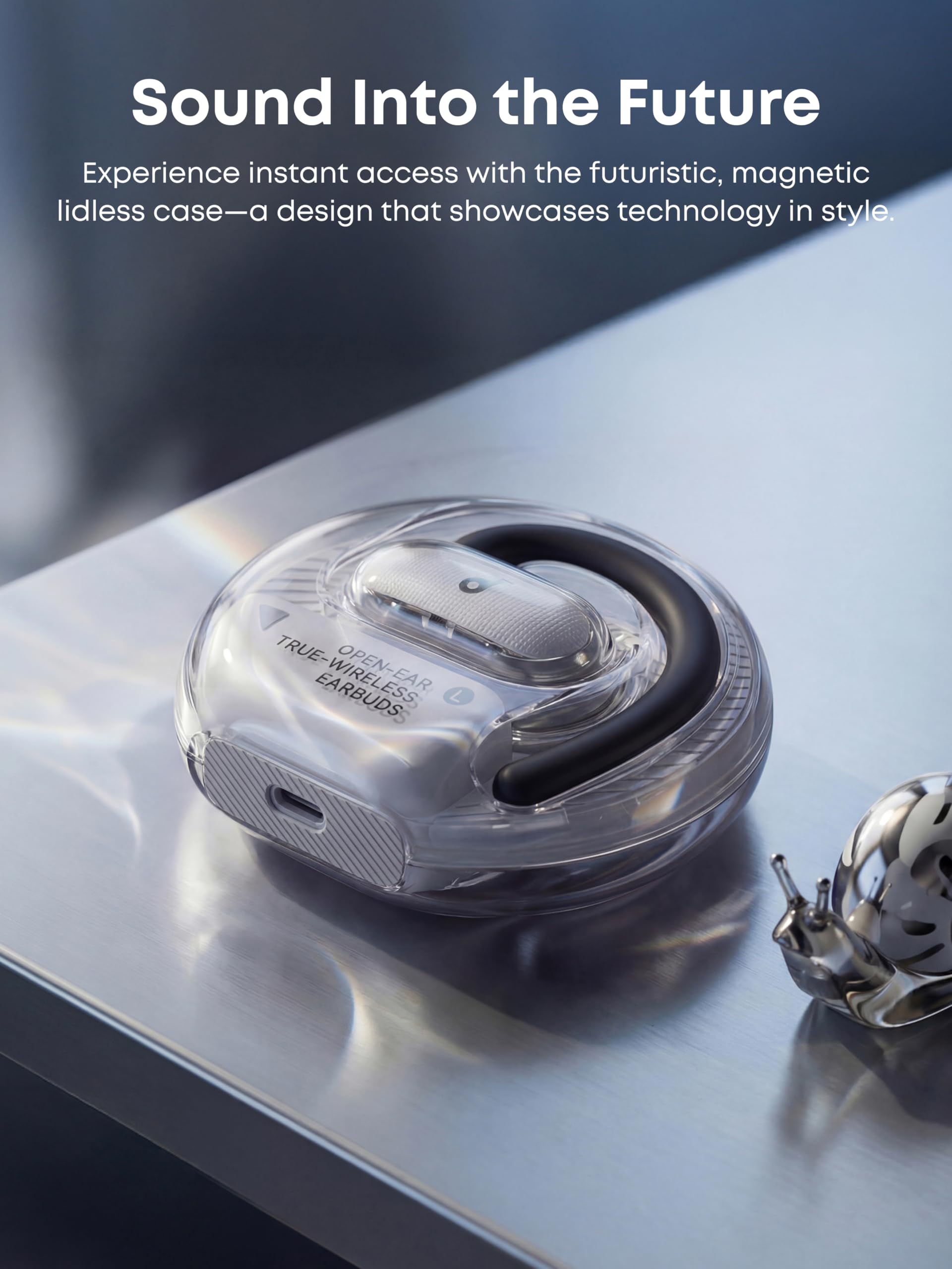 Soundcore V40i de Anker, auriculares abiertos, diseño transparente, estuche sin tapa, 4 posiciones ajustables para cada tamaño de oreja, graves más ricos, IP55, tiempo de reproducción 21 horas, llamadas claras AI, Bluetooth 5.4, control de aplicaciones